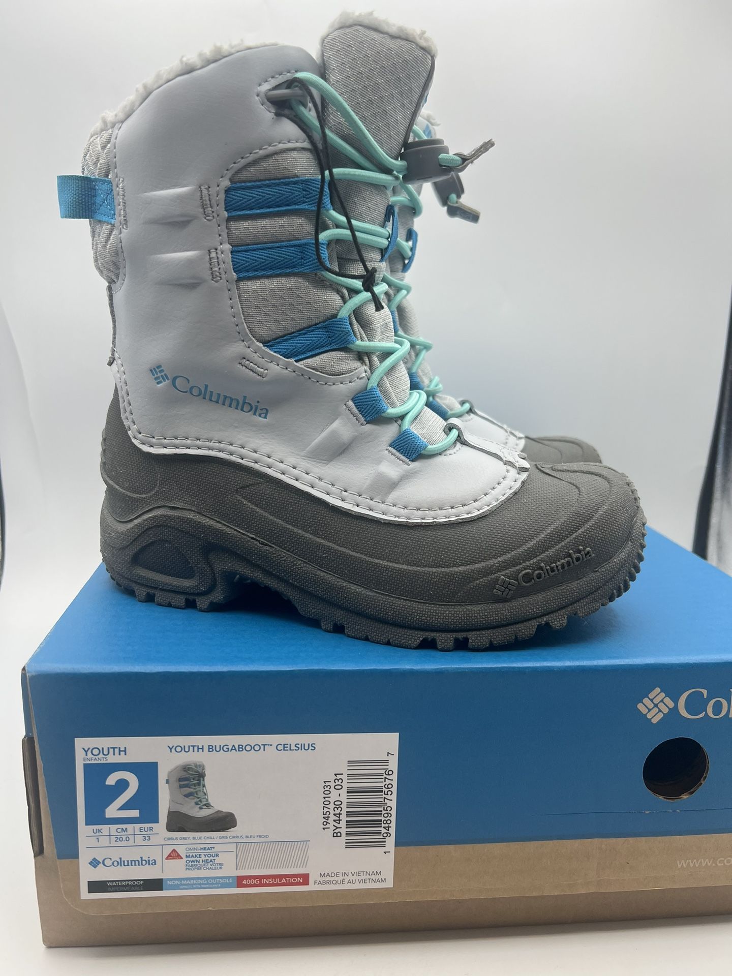 Up for sale are these Columbia Youth Bugaboot Celcius Insulated/Waterproof Snowboot in size 2. Only used one time. They are in excellent condition. Please reach out with any questions!