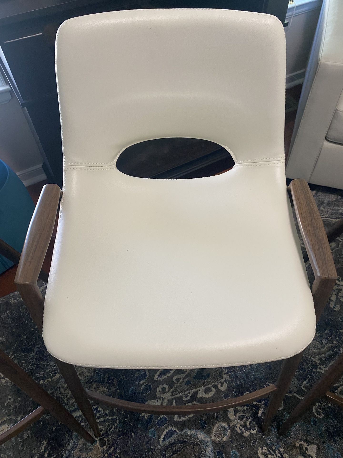 Four letter, white countertops, brand, new arms, and leg are metal sturdy. The seating height is 31 inches.