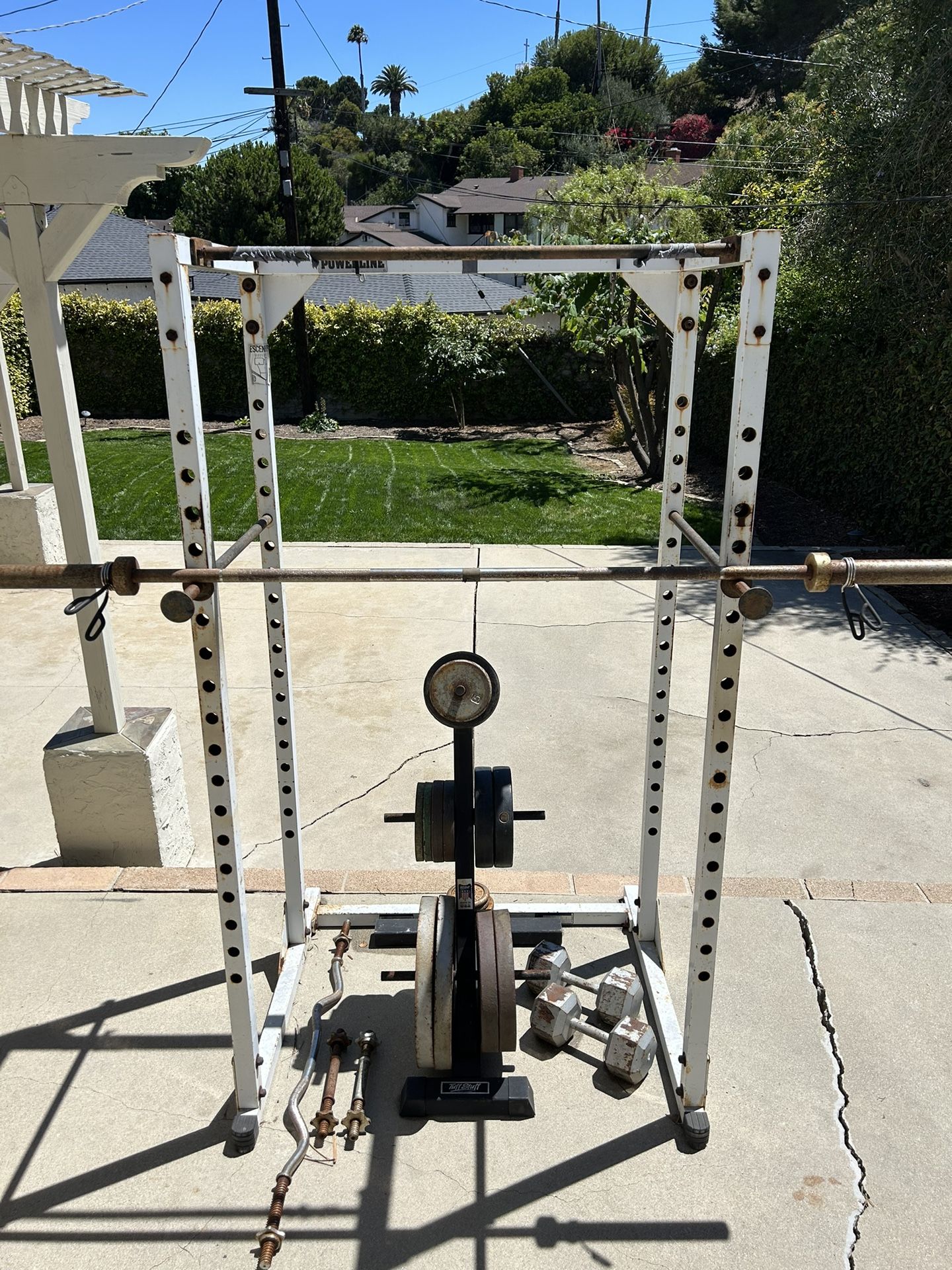 Squat rack / barbell / olympic weights / curl bar with weights / dumbells with weights / set of 50lb dumbells. Will give you a free set of adjustable dumbells as well. Willing to part out equipment or sell as set. $500 obo!