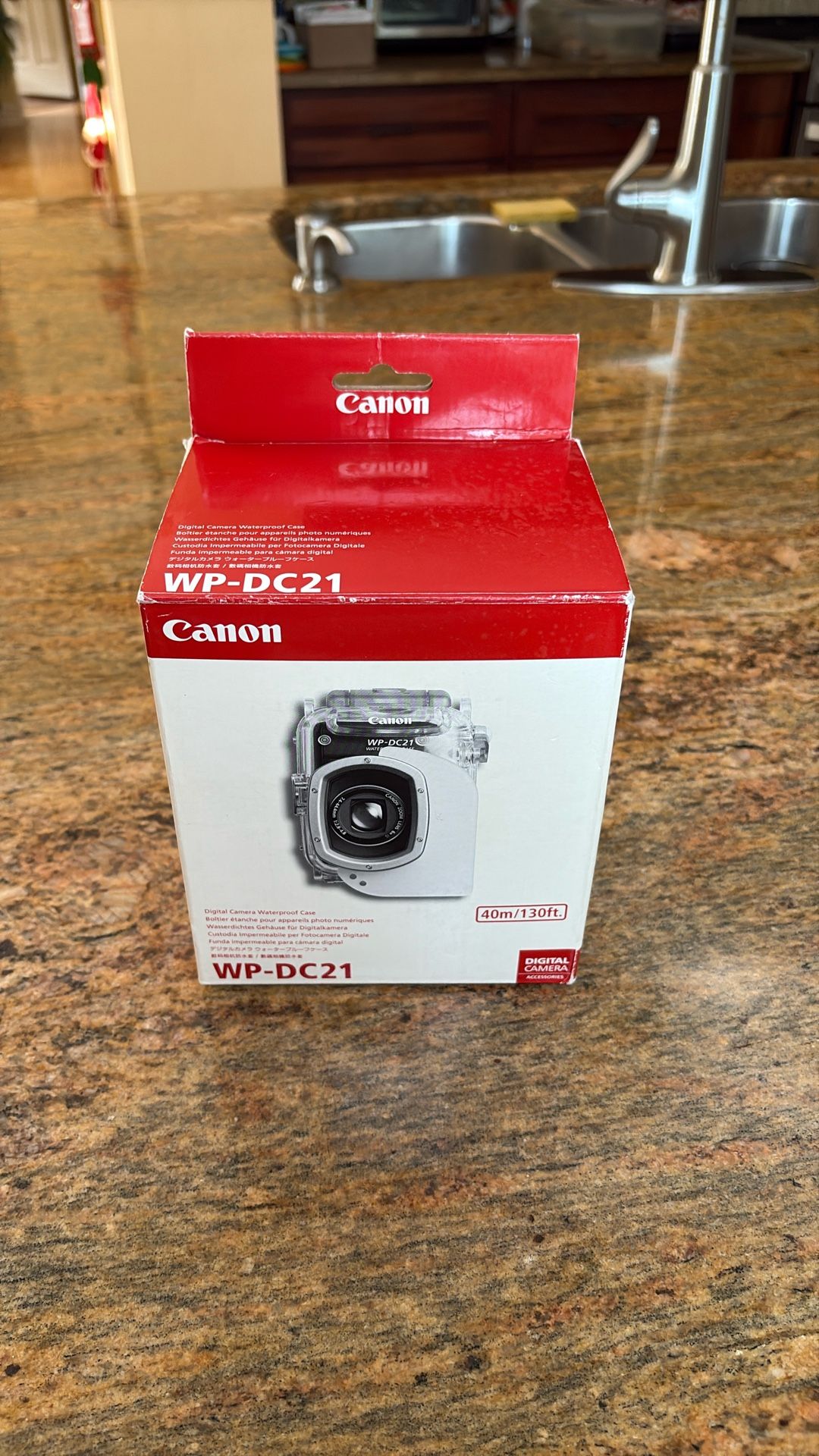 Use your camera in the rain, on the beach protected from sand, on ski slopes, or under water at depths to 130 feet. Includes waterproof case WP-DC21, neck strap, wrist strap, diffusion plate, user guide, and silicone grease for the waterproof seal. Polycarbonate with a clear glass plate. Genuine Canon product. Dimensions (excluding protrusions):5.51 x 4.07 x 4.48 inches.