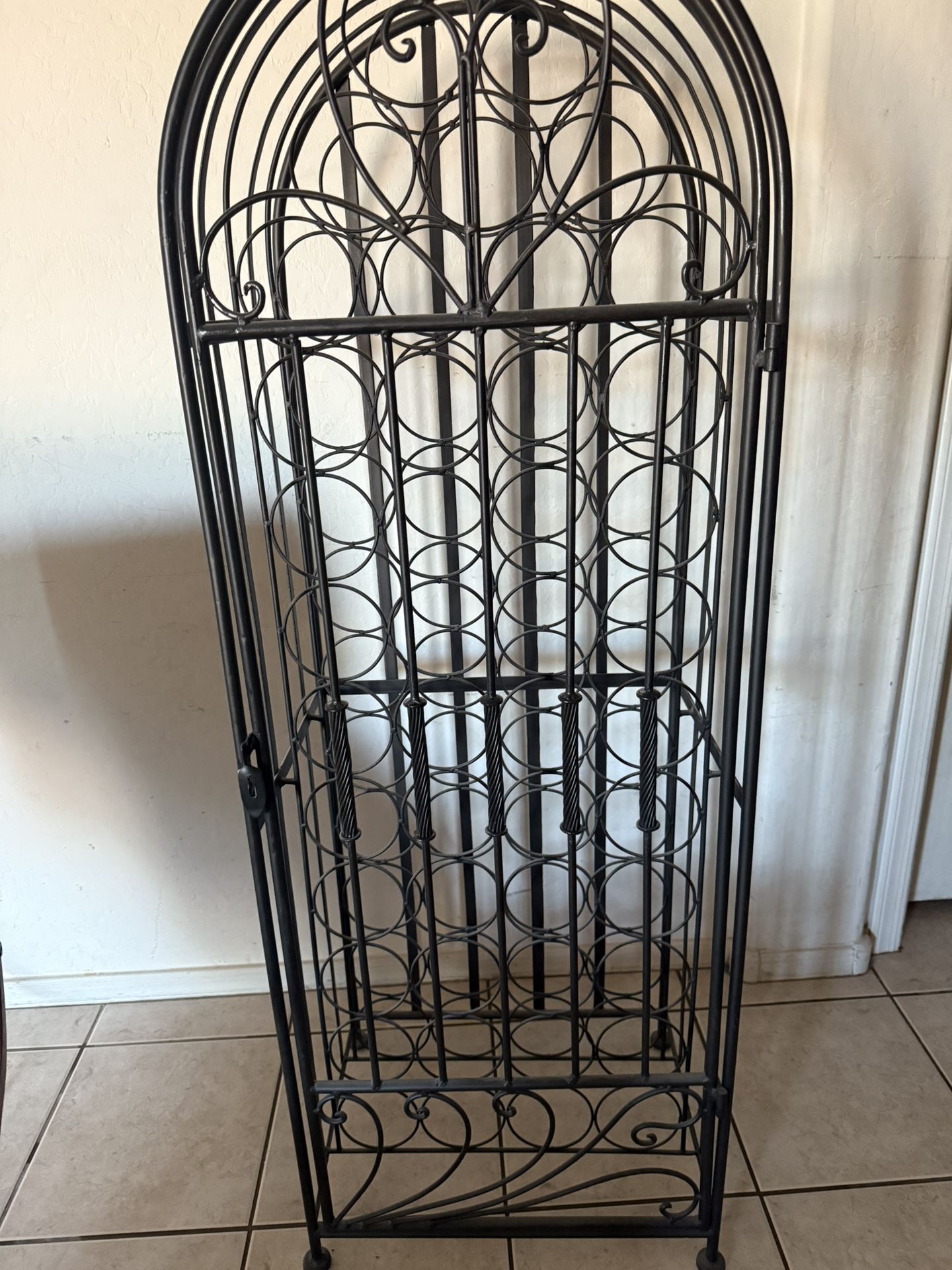 Up for offer is an Iron wire rack that holds 45 bottles . Asking 45$. Thank you for looking.