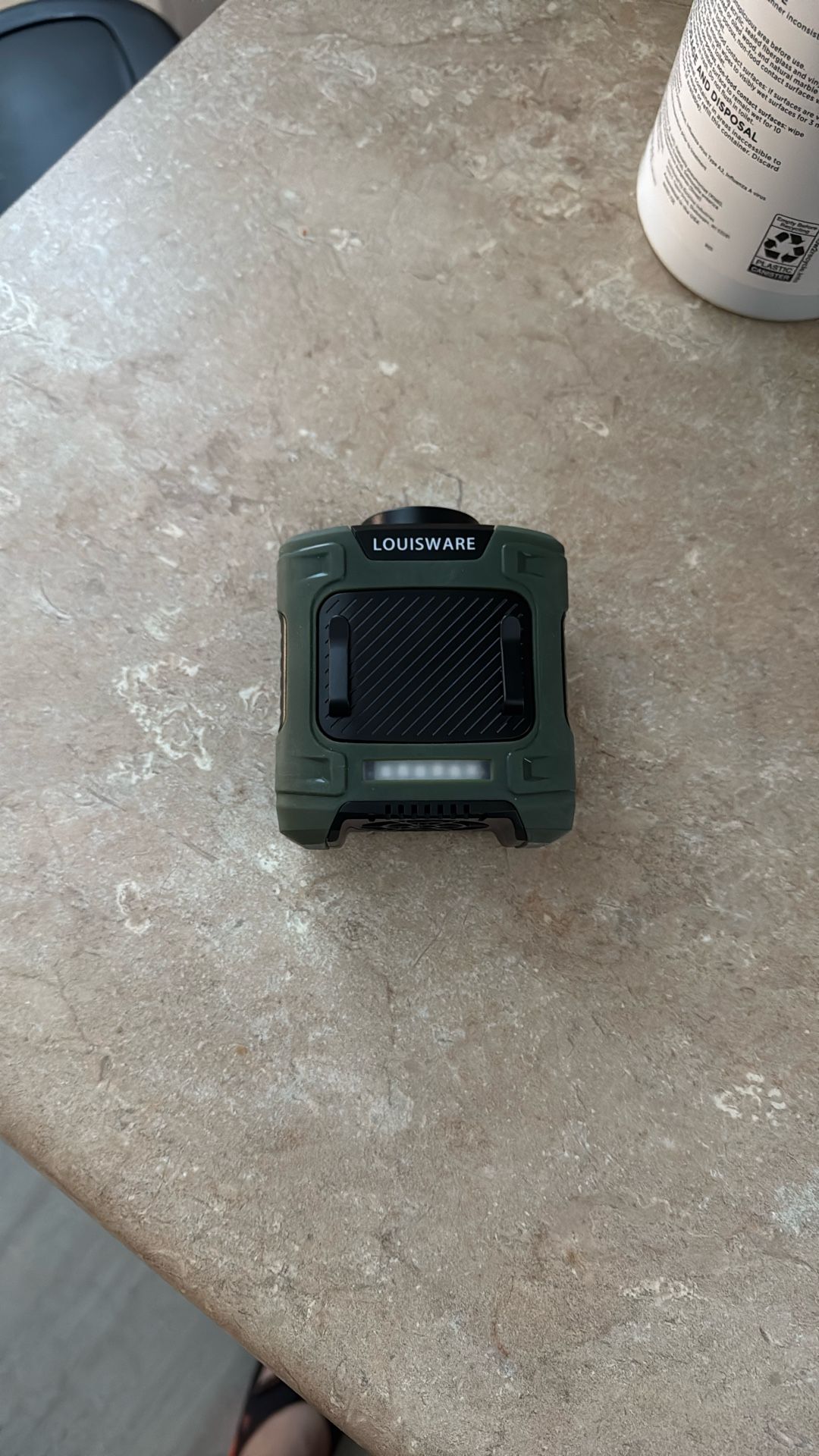 Great for runners or outside workers. Has built in fan and light