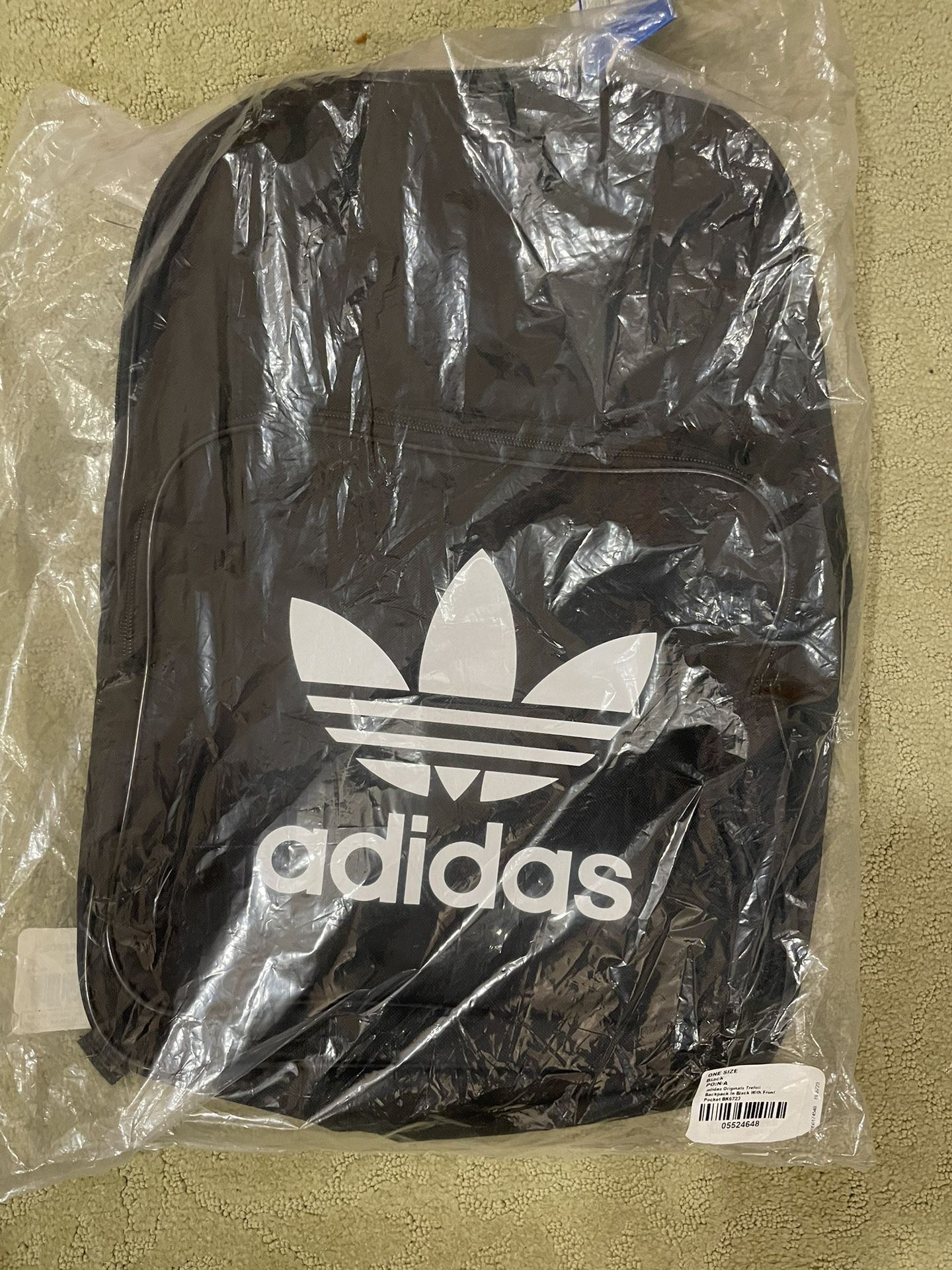 Brand new black adidas backpack. Still in plastic 2 pockets (1 full size, 1 half size) Black with classic white trefoil front $40 OBO Perfect for work, school, or travel
