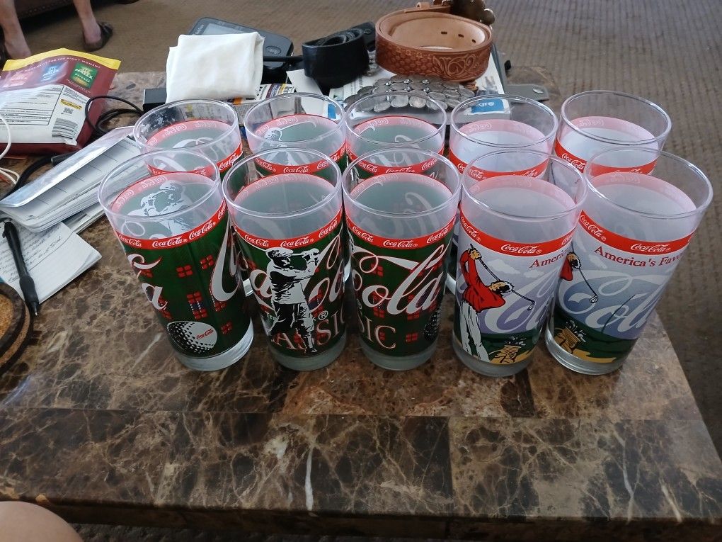 Like New Coke Caca - Cola golf glasses 10 total, 6 " tall by 2 3/4" top opening. Cash only thanks! Pick up in Palm Springs, CA.