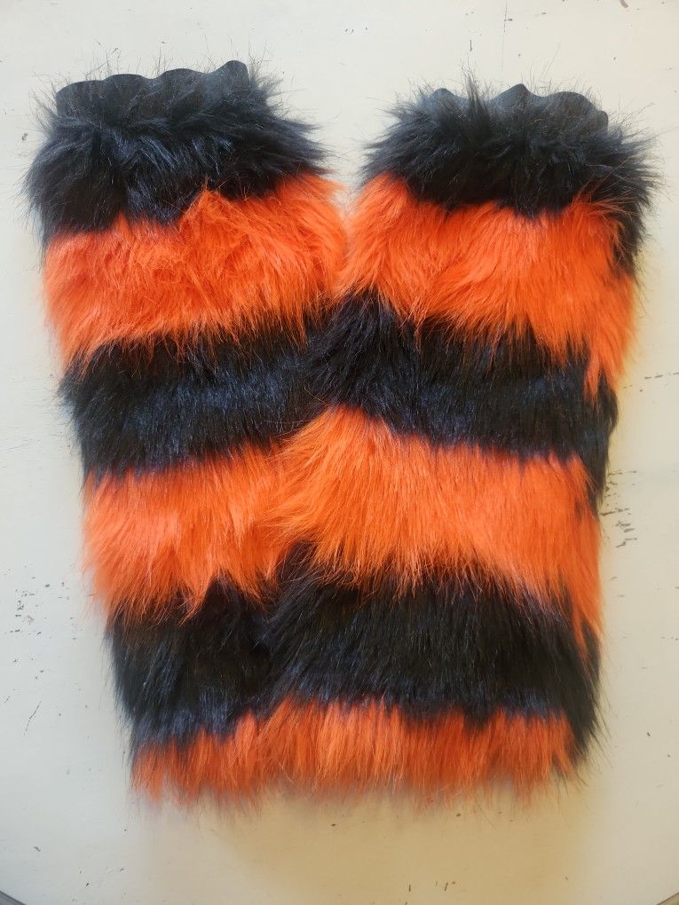 Furry Leg Warmers Orange and Black Striped Great condition $15