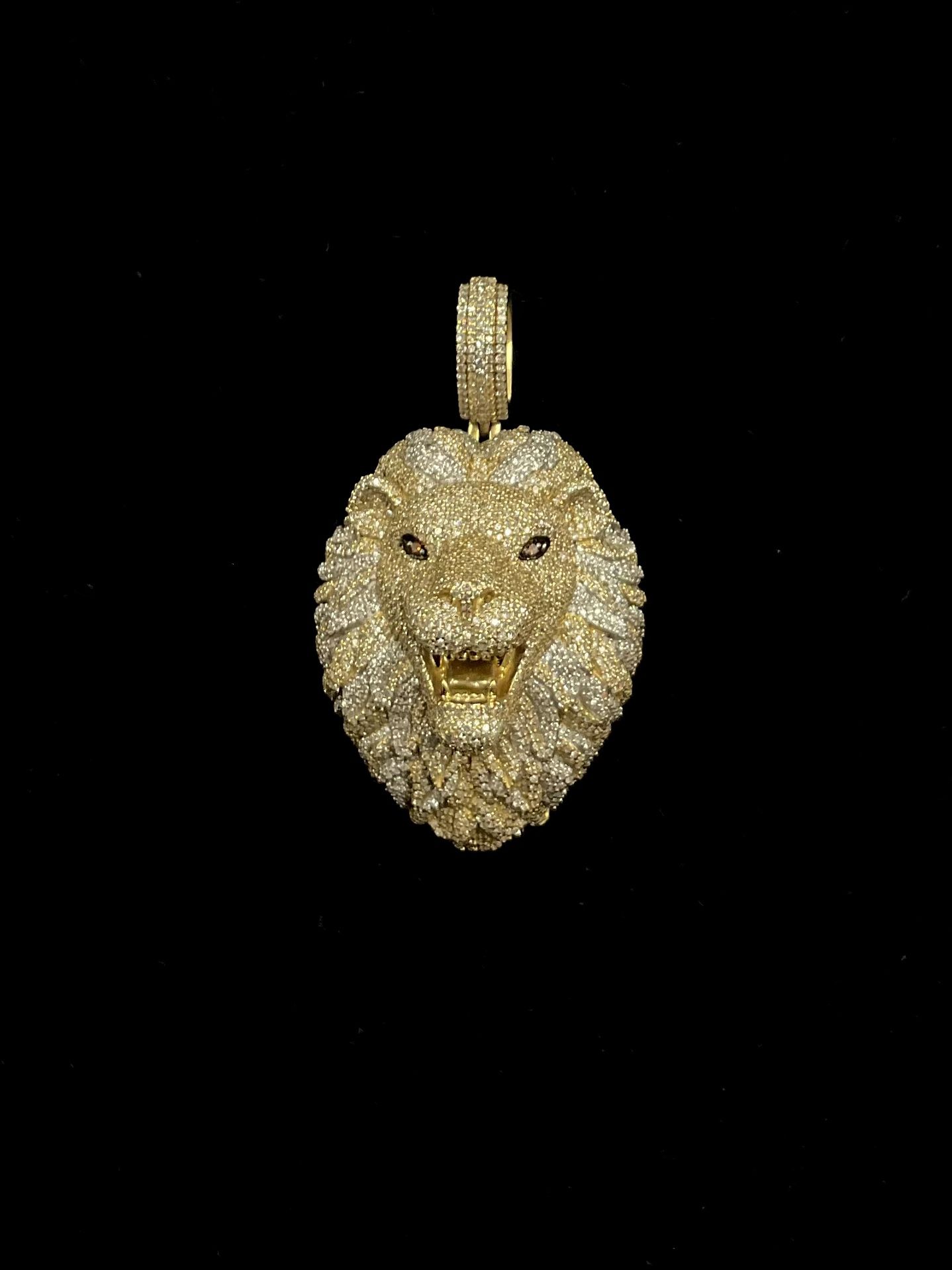 This 10K gold lion head pendant features sharp detail and a bold, powerful look, finished with deep red garnet gems set in the eyes. A striking symbol of strength, leadership, and confidence, designed to stand out on any chain.