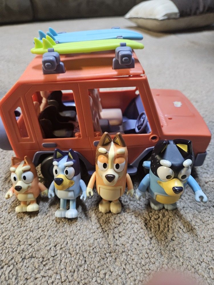 Bluey Family Road Trip Play Vehicle with Chilli, Bluey, Bandit, Bingo figures
