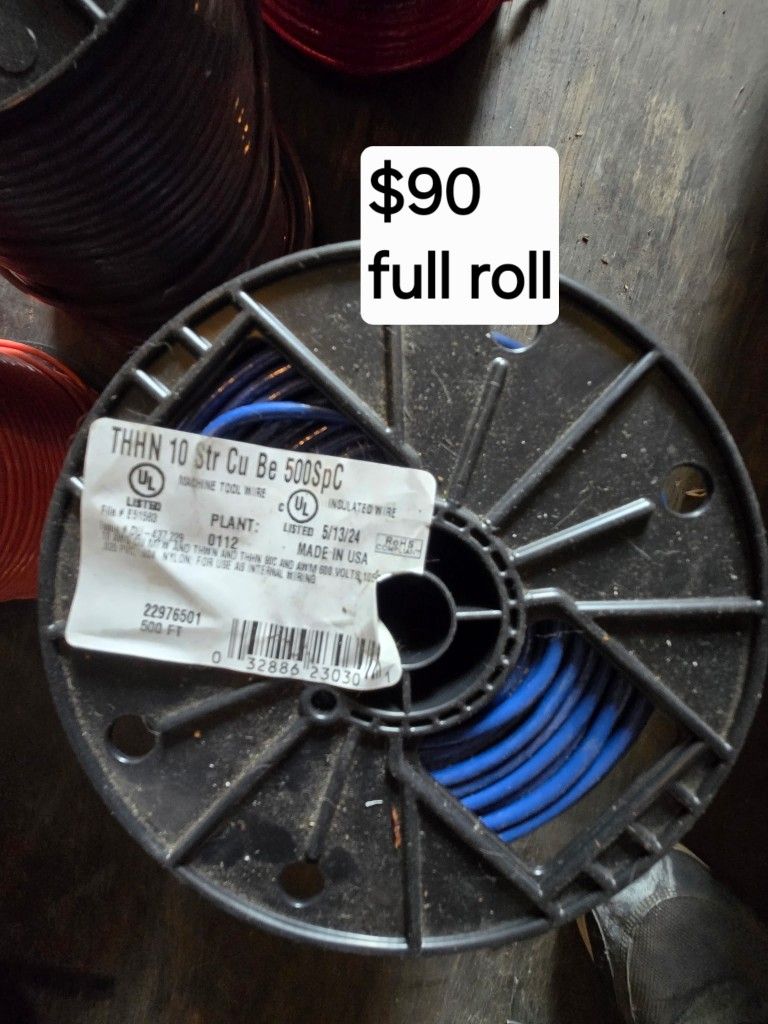 BRAND NEW-FULL ROLL Copper wire #10 stranded THHN 500 Feet BLUE 50% CHEAPER THAN RETAIL PRICE