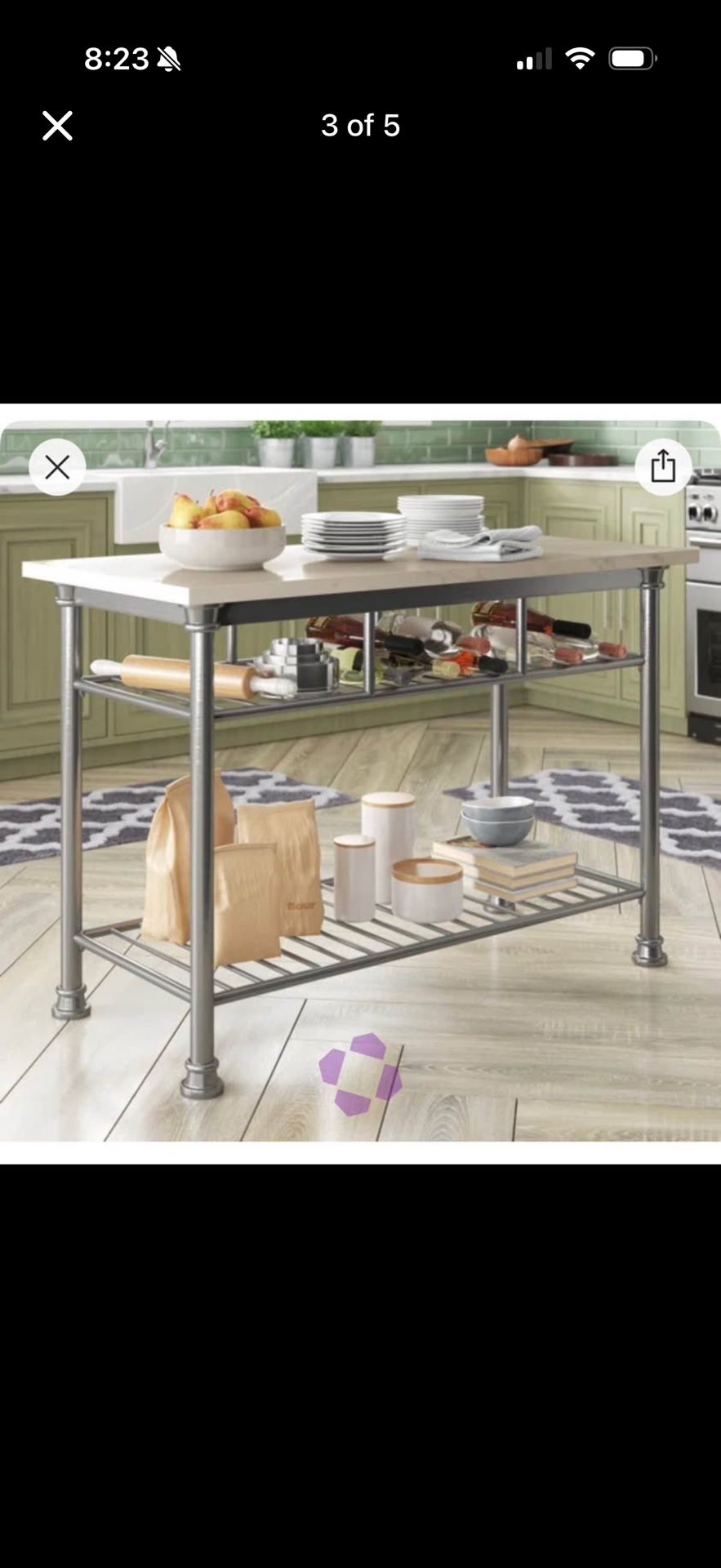 Kitchen prep table / small kitchen island by Red Barrel Studio with a quartz veneer top and industrial metal base. Design is very similar to prep tables sold at Crate & Barrel. Great for extra counter space, food prep, or kitchen storage. Dimensions: • 40” W • 20” D • 36” H Features: • Quartz veneer countertop • Sturdy metal frame • Two lower shelves for storage • Modern industrial design • Works well as a prep station, small island, Wonderful and versatile piece in excellent condition!