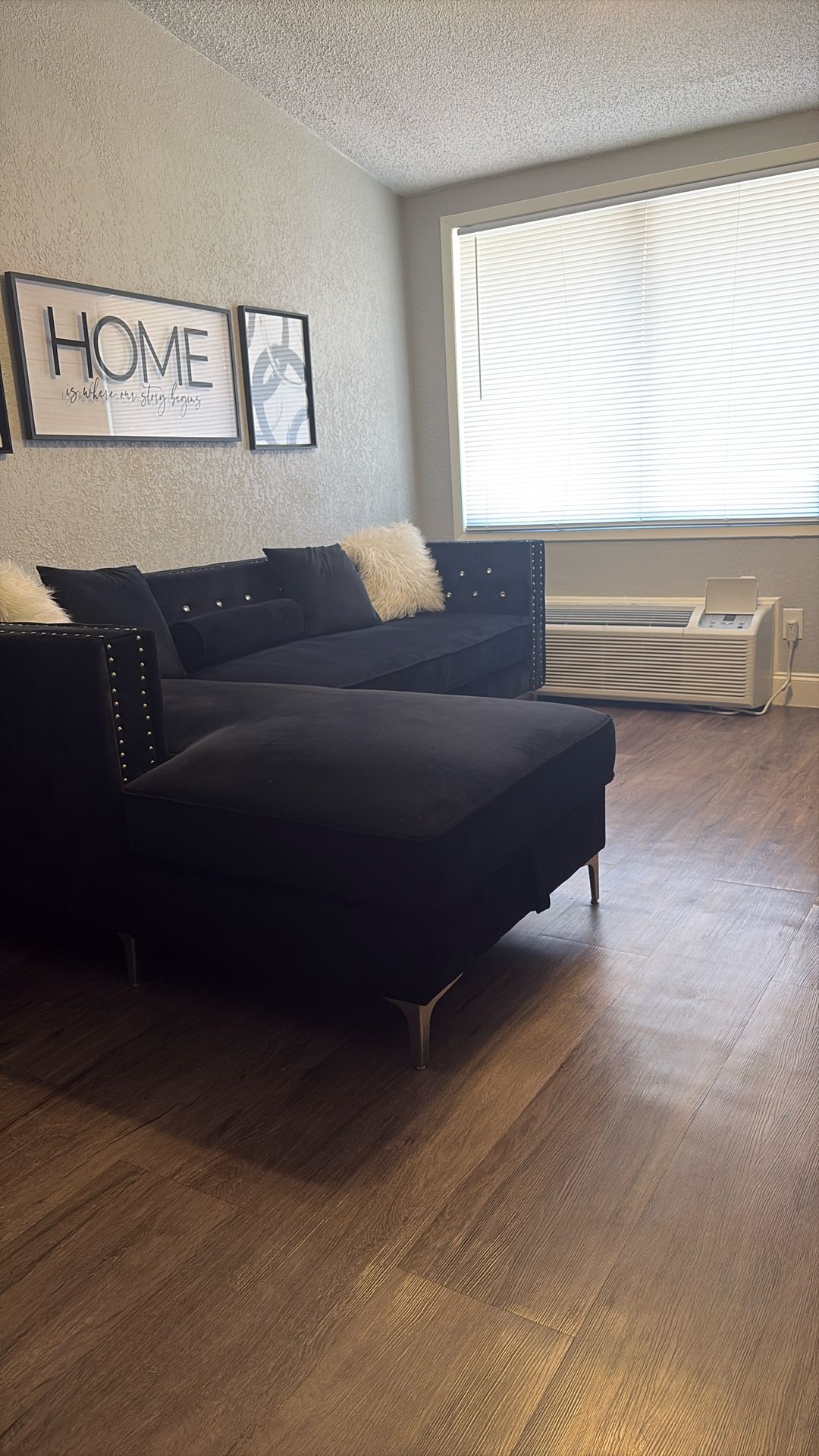I’m moving and need this gone asap. Black upholstery sectional. Clean, smoke free home. No damage. Price negotiable! I will add the table on my profile as well for free!