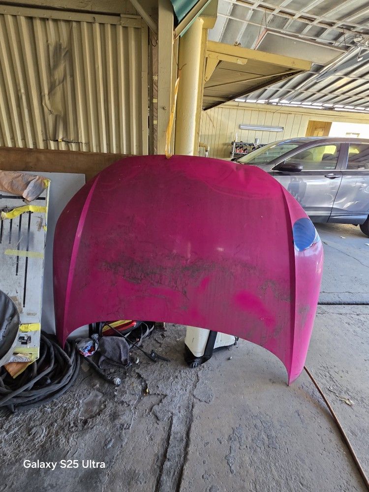 Used aluminum hood. Very expensive hood. Is oem. Has small dent please refer to pictures. Is blue. Refer to pictures. Thanks