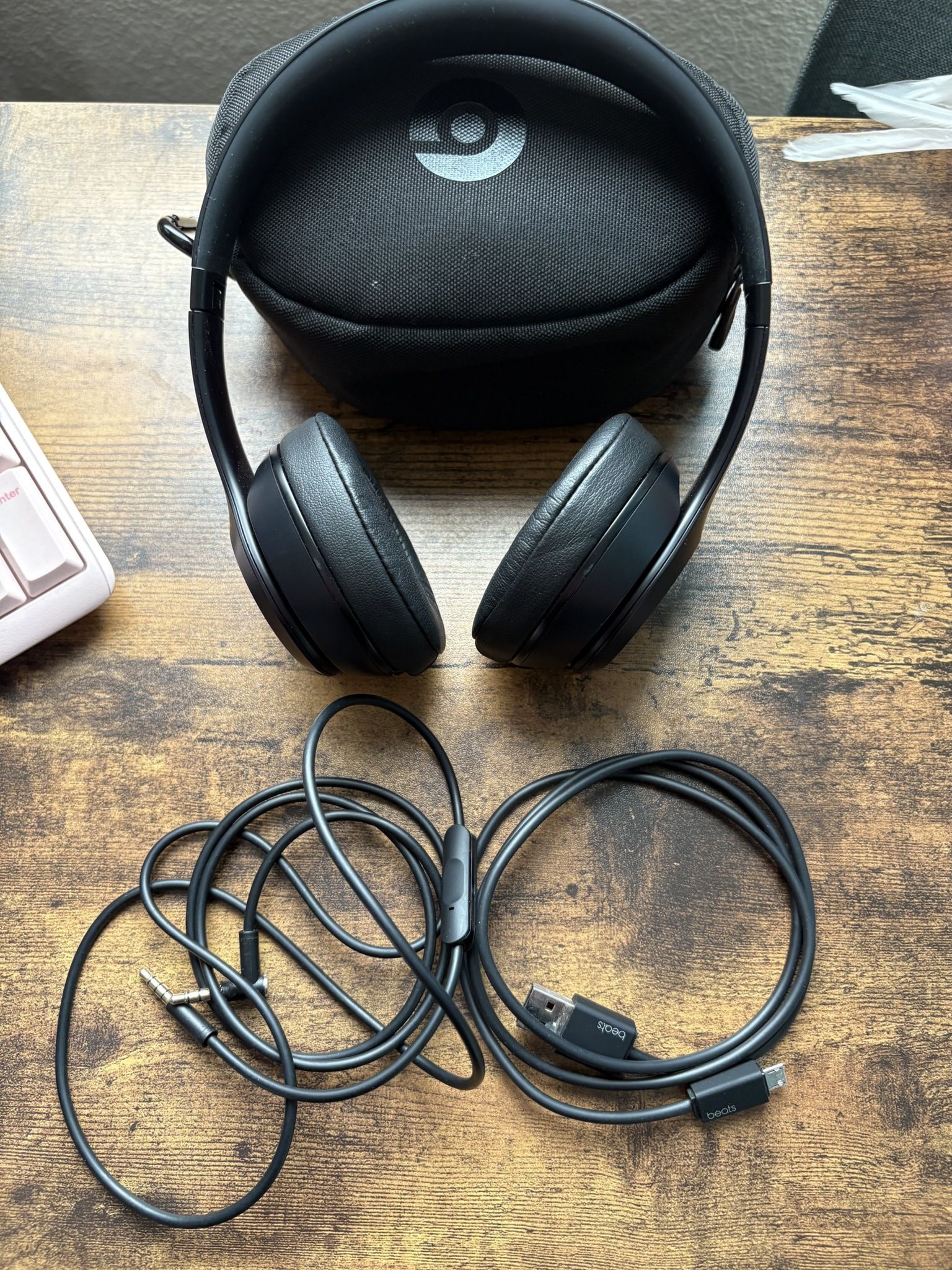 Beats by Dr. Dre Beats Solo 3 Wireless Headphones Purchased in 2023 Paid $140 Barely used Comes with case & charger I'll throw in audio cable cord purchased to work with PC. Comes with box.