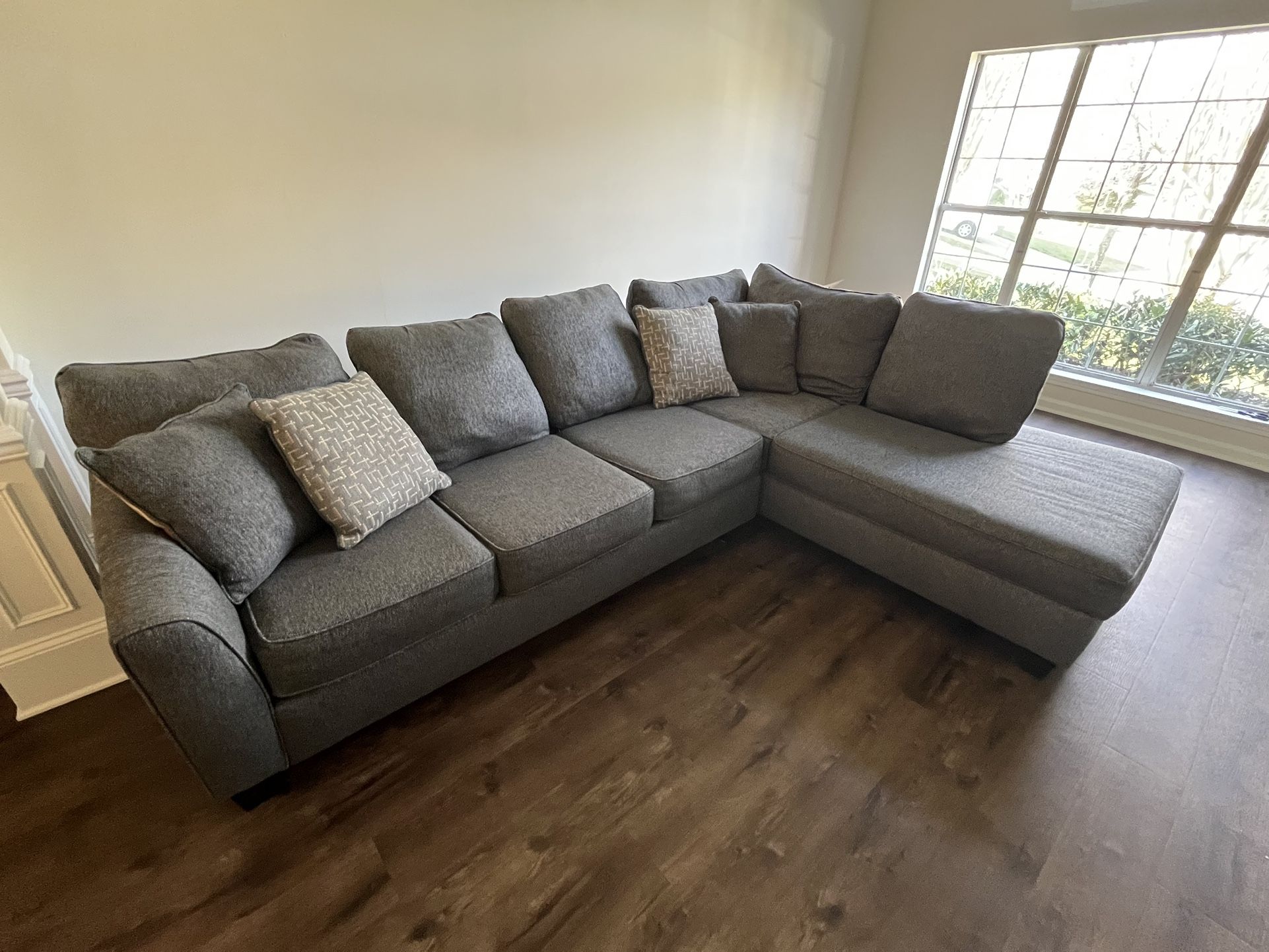 - Normal wear - 2 piece - 4 pillows - Long side: ~113 in. - Short side: ~84 in. - Detachable cushions