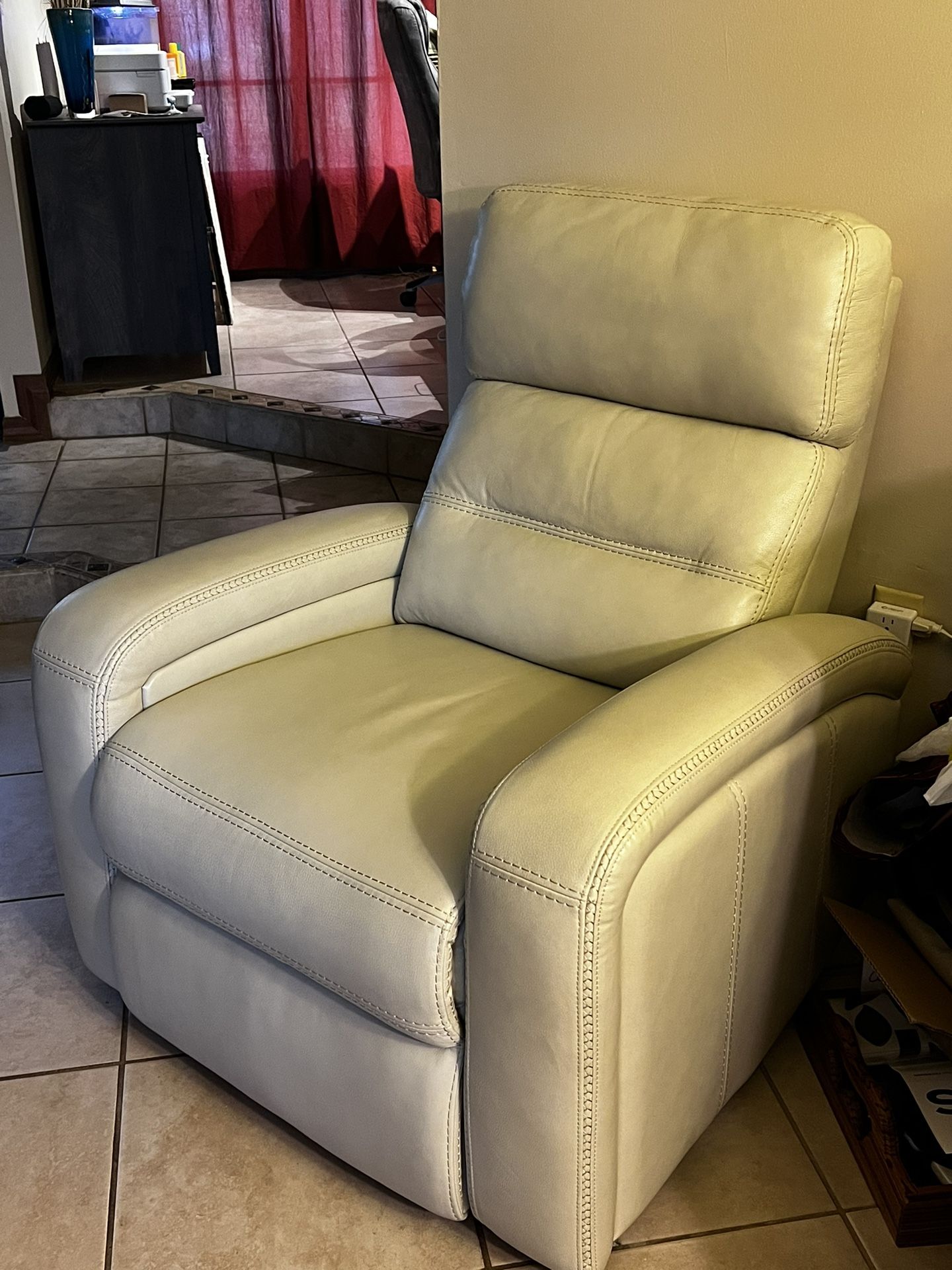 Brand new, dual power, electric recliner. Color - Ivory Material - leather Purchased for my Mom, but she can’t use it. Paid 1400.00 Asking 1100.00 obo
