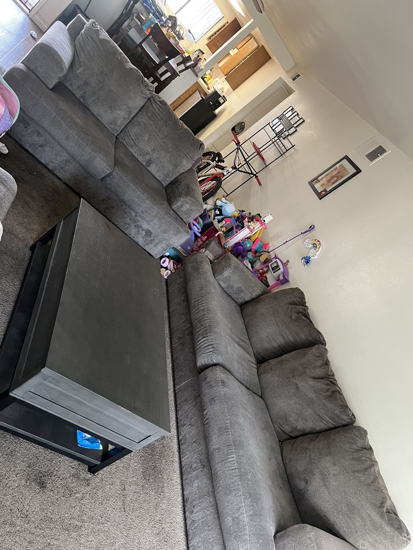 Sofas for sale the big one has some writing on it. No major stains or anything. I’ve had them for 3 years. If interested message me