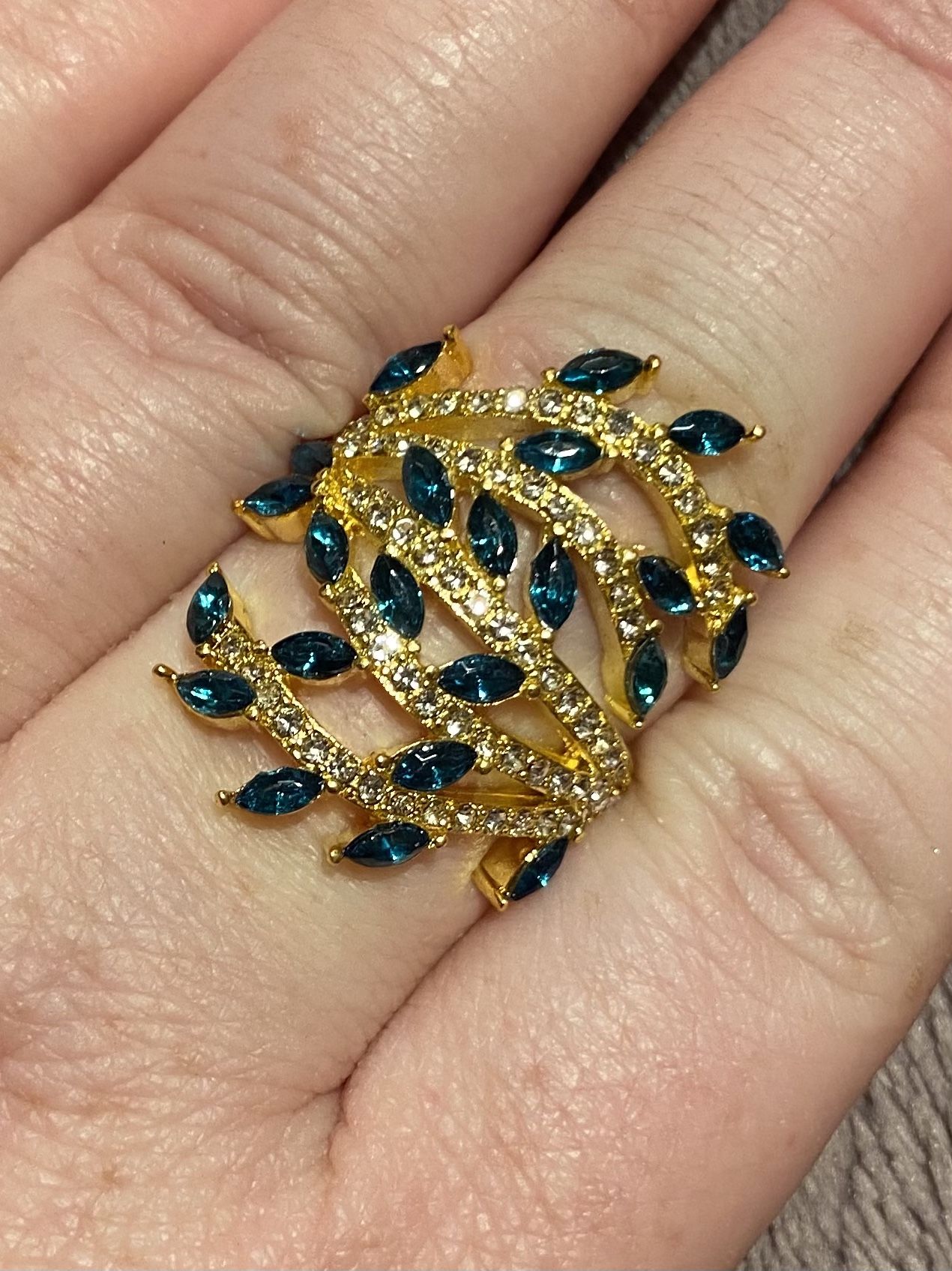 Vine Crystal Gold Ring Sz 6 & 6.5