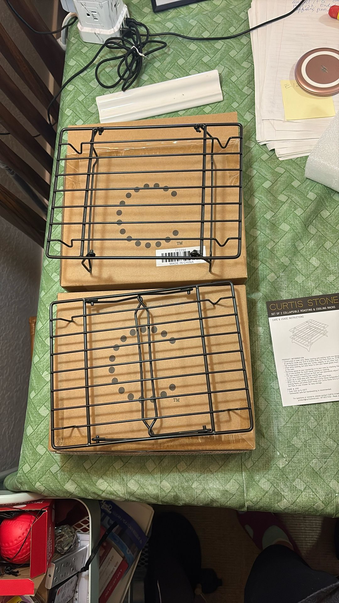 Collapsible Cooling And Roasting Racks-set Of 2 - new. Curtis Stone brand. Oven and dishwasher safe. New in box. Each is about 9 1/2 by 7 1/4.”. 2 sets available.