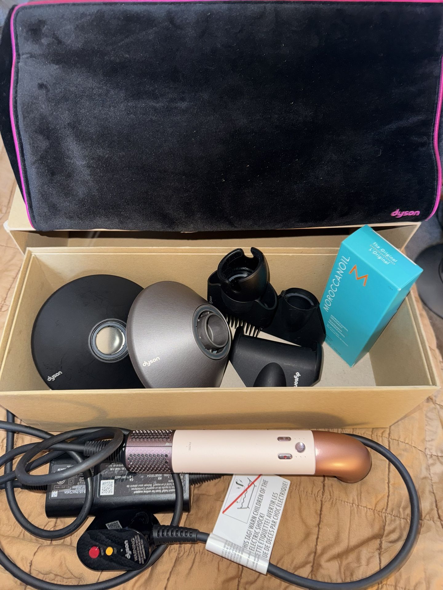 Retails for $649 Used it twice! Literally new condition! Comes with the velvet bag I bought separately for $80 and a new bottle of $50 Moroccan oil Also has an extra diffuser attachment Would make a great gift! Thank you