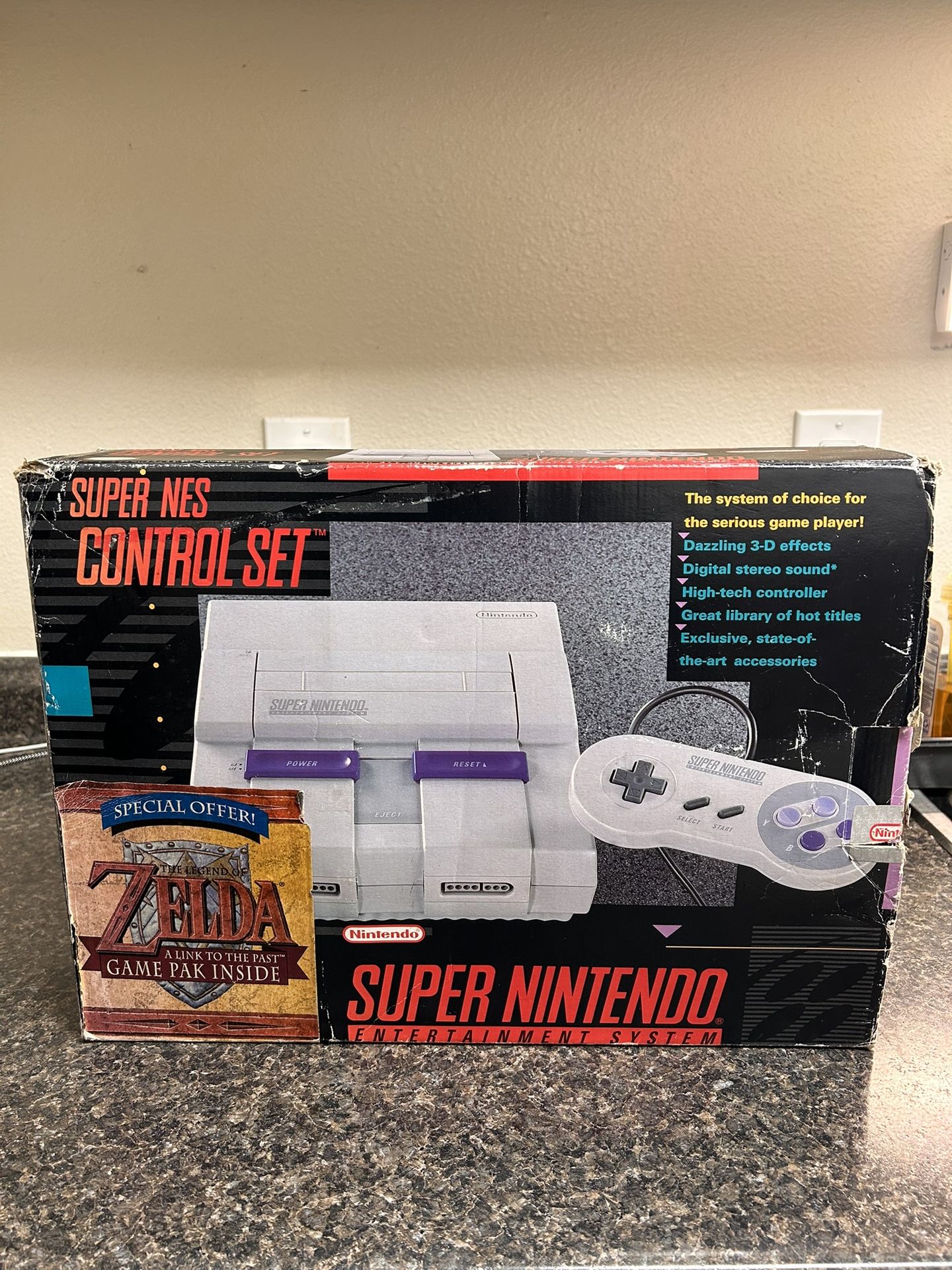 Here is this beautiful Super Nintendo in box with original purchase receipt, serial numbers all match. Asking $400 obo