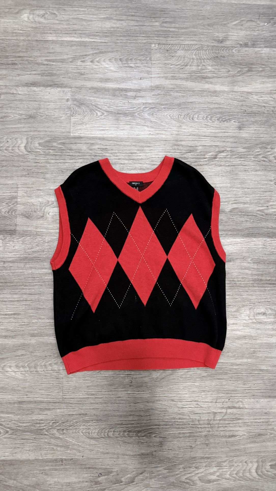 Forever 21 Red And Black Argyle Sweater Vest Size: Medium