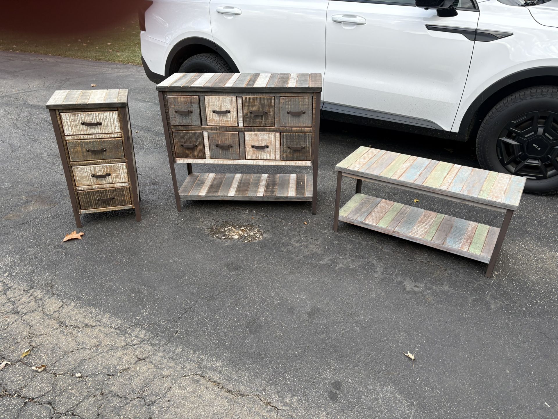 SoHo Accent Furniture 3 -pieces ALL 3 PIECES ASKING $225 Or priced individually below with dimensions Note color of coffee table is different than other pieces !! SoHo Accent Cabinet 30” tall x 16” wide x 13” deep 4 drawers Each drawer 5” tall x 12” wide Asking $60 SoHo Transitional chest 32.5” tall x 37” wide x 15” deep 8 drawers Each drawer 7” wide x 7” tall Asking $175 SoHo accent coffee table 17” tall x 36” wide x 14.4” deep Asking 60