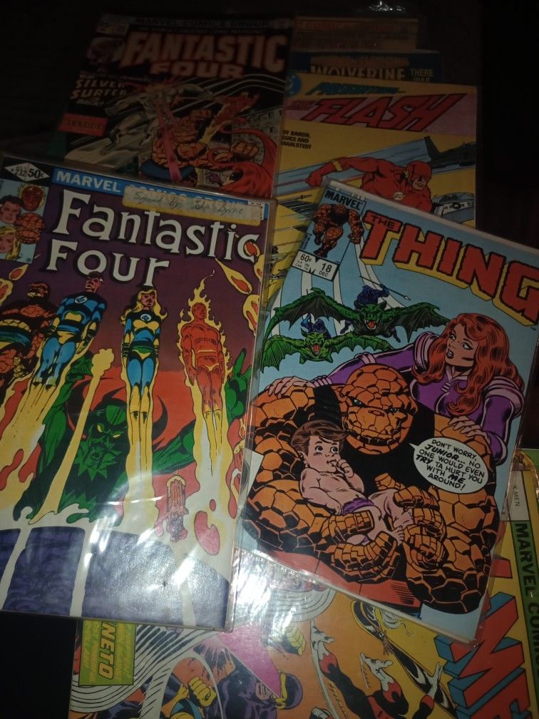 Big assortment of comic books old ones from 20 cents to more expensive ones and newer but all still old collectible perfect condition her flash Spider-Man fantastic four thing X-Men Ghost Rider weapon x deadlock and more