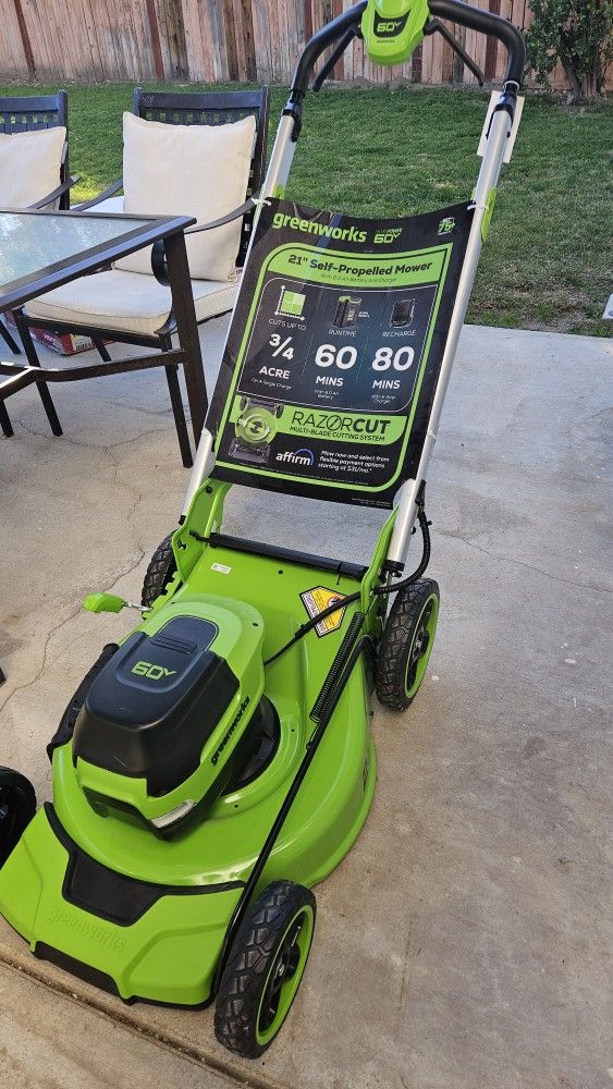Greenworks 21in self propelled Brushless ultra power 60v I battery included No charger No bag