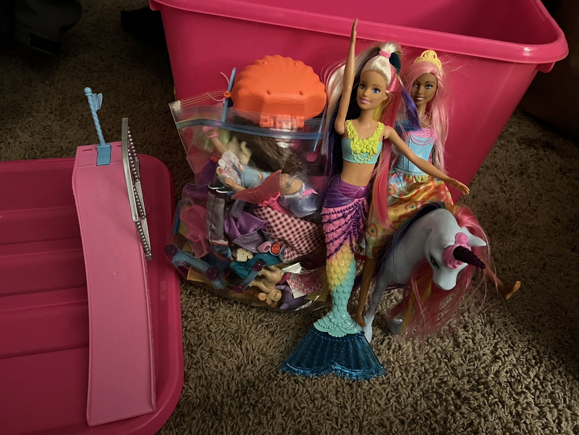 Lot of unicorn Barbie horse and mermaid Barbie’s. Asking 20.00 obo. Barley played with.
