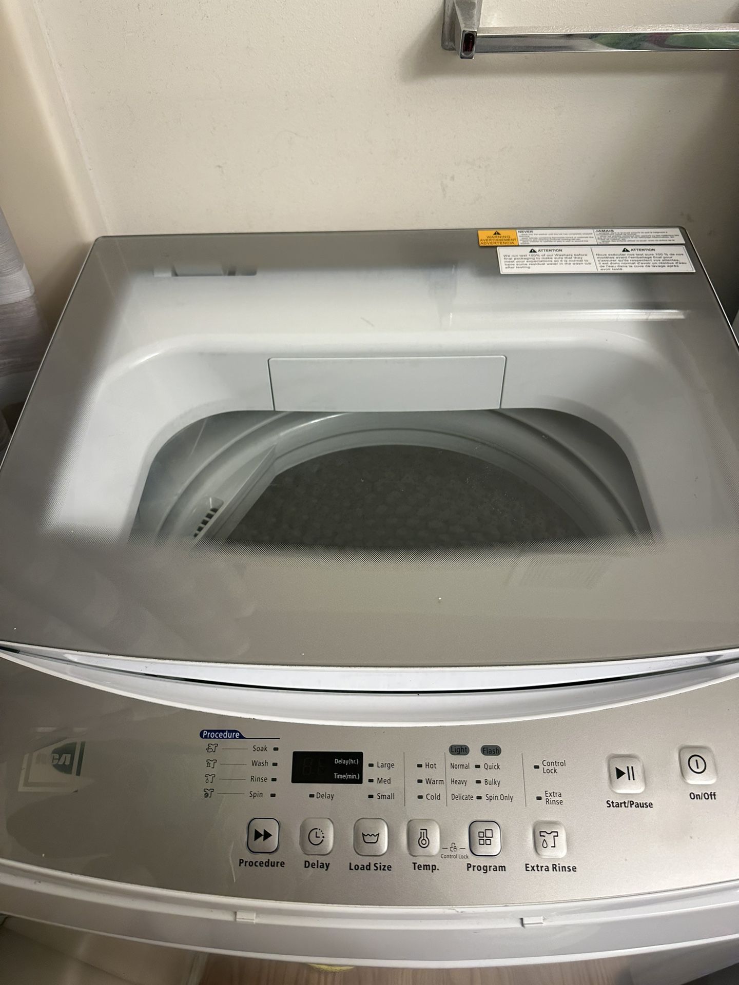 Item has a water lake on the bottom , unknown water leak. Machine is in great condition brand new but not sure where does the water leak comes from. limited space and small loads, this top loading RCA 3.0-cu. ft. Compact top load washer is a dream. Equipped with convenience features such as see-through window, electronic controls with LED display, stainless steel inner tub as well as durable construction just like larger models, this washer will make any laundry day a breeze. Perfect for anywhere you need to save space such as apartments or vacation home 3.0 cu. ft. compact washer is perfect for limited spaces Stainless steel interior tub is durable and resists rust and chipping 8 wash cycles and 8 water levels for excellent fabric care Electronic Controls with LED display are easy to use and a signal alerts you when your wash is complete Quick-connect sink adapter included Lift and carry handles on cabinet sides Delay start function so you can wash clothes when it fits your schedule 800 RPM maximum spin speed Adjustable leveling feet to make sure your washer is level in order to ensure the washer operates at peak efficiency Pulsator wash system is gentle on clothes while giving a deep clean Low noise operation less than 72dB Top load for easy loading and unloading of your clothes Energy star qualified for money and energy saving