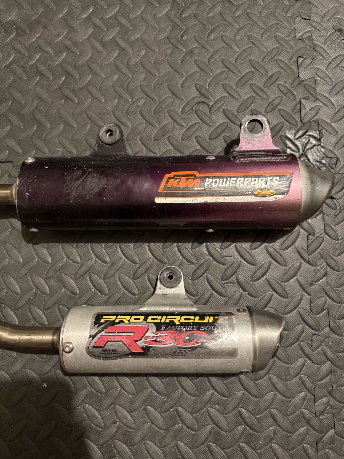 Two dirt bike exhausts both off of a 2012 KTM 150SX. Not sure the exact models but one is an FMF and the other is Pro Circuit. They go for around $150-200 brand new online. Used for maybe 20-25 hours each. Shoot me an offer for them. I'll give you a better price if you buy both.
