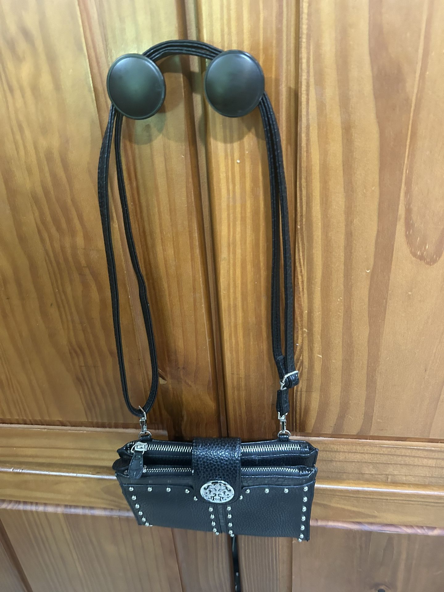 Ladies Cross Body Organizer bag “ Brighton” Like Two zip compartments Center organizer with snap closure Credit Card and license compartment Outside storage back pocket Adjustable strap Are you trying to sa just trying to
