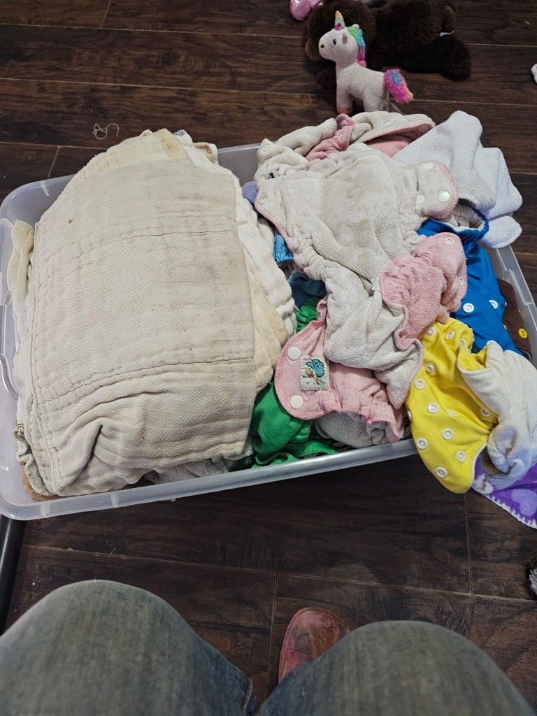 36 cloth diapers premium size I think. 22 smaller sizes. Have not been used in a while. 6 to 8 snap closed. 25 covers mostly girl stuff and some elastic needs to be replaced. 75 for all obo