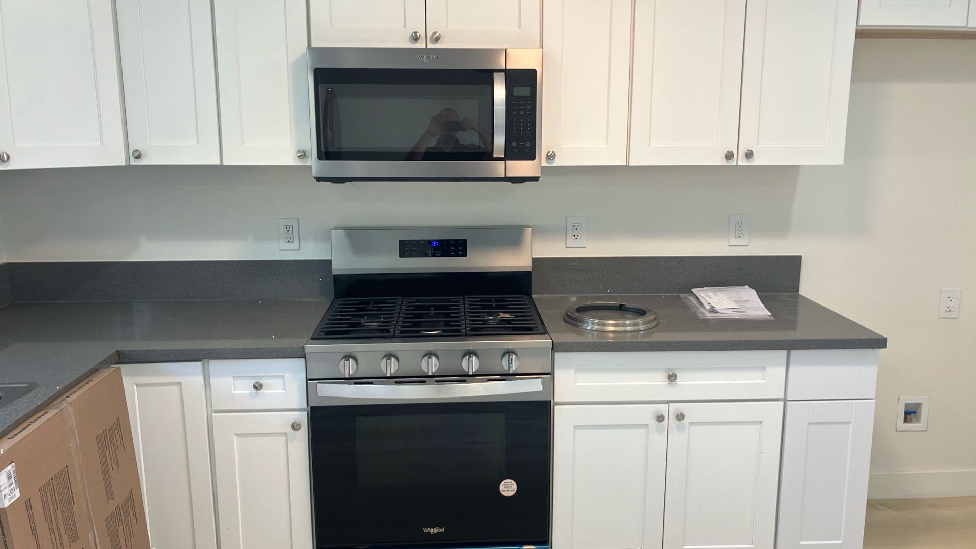 Installs microwave, dishwasher, stove, washer, and dryer any