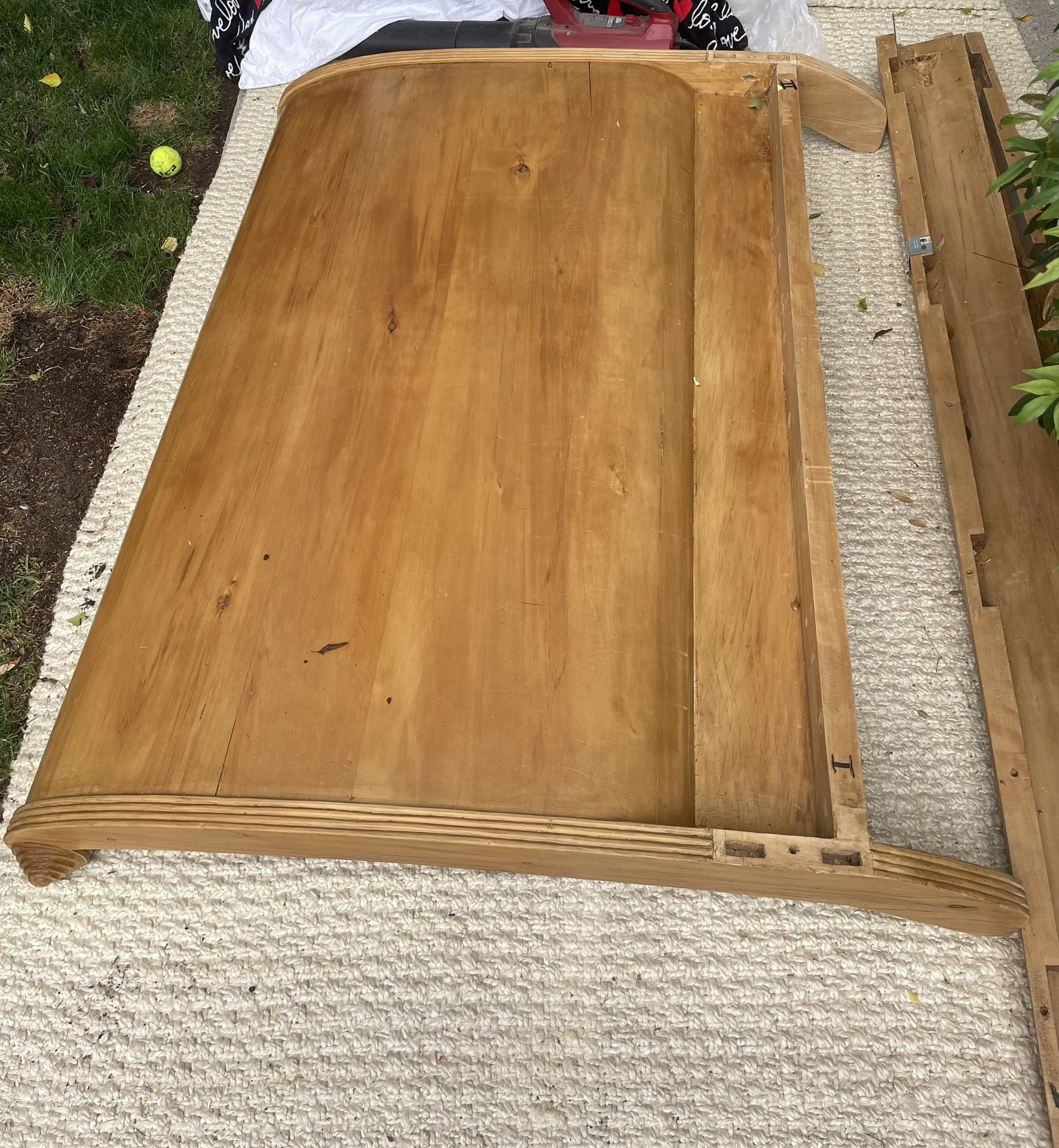 Sleigh bed style frame. Queen size. In great shape but needs new hardware. Must pickup, cash only. Item is quite heavy