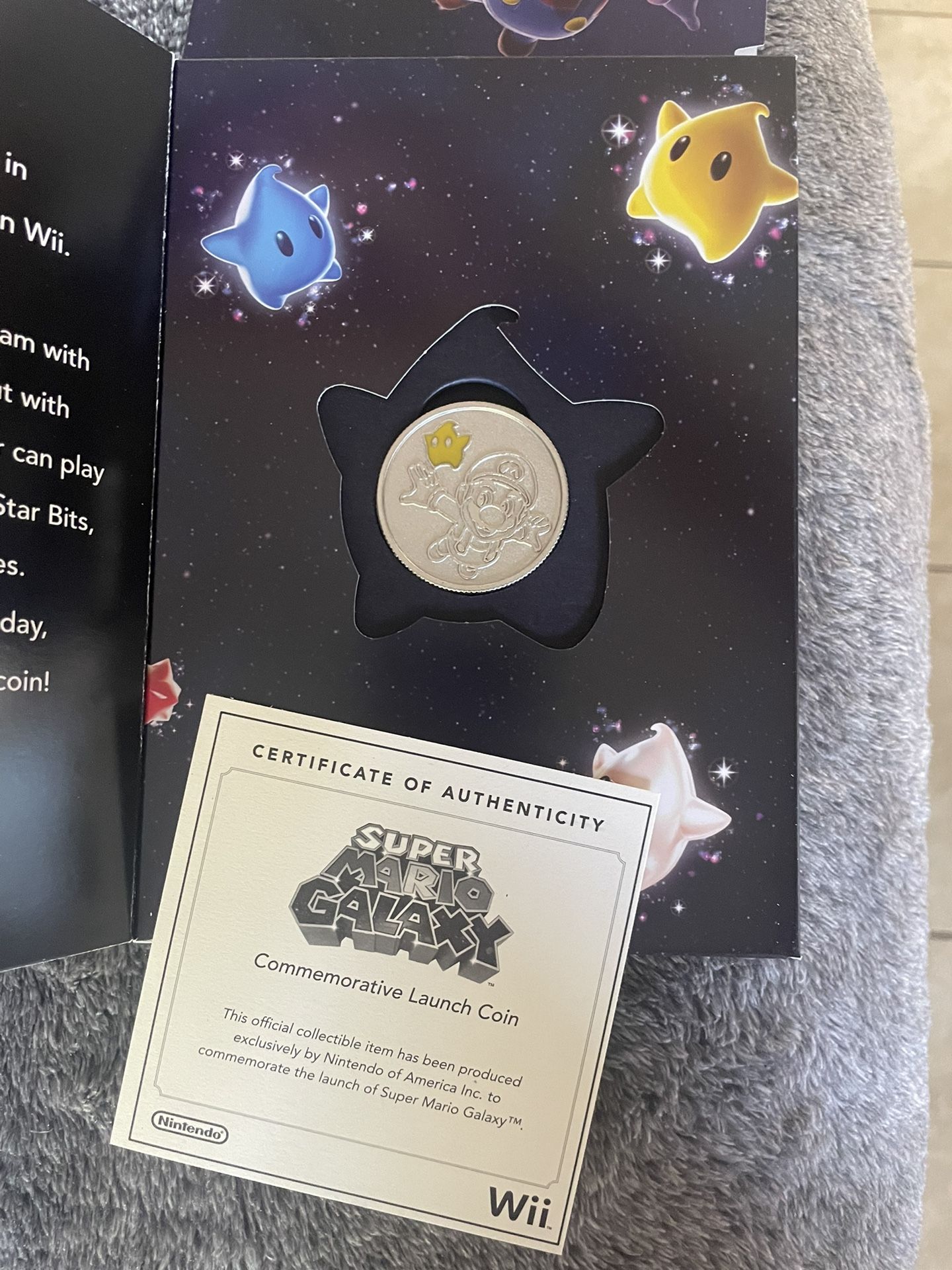 Official Nintendo Wii Super Mario Galaxy Commemorative Launch Coin W/COA 2007 with certificate of authenticity.