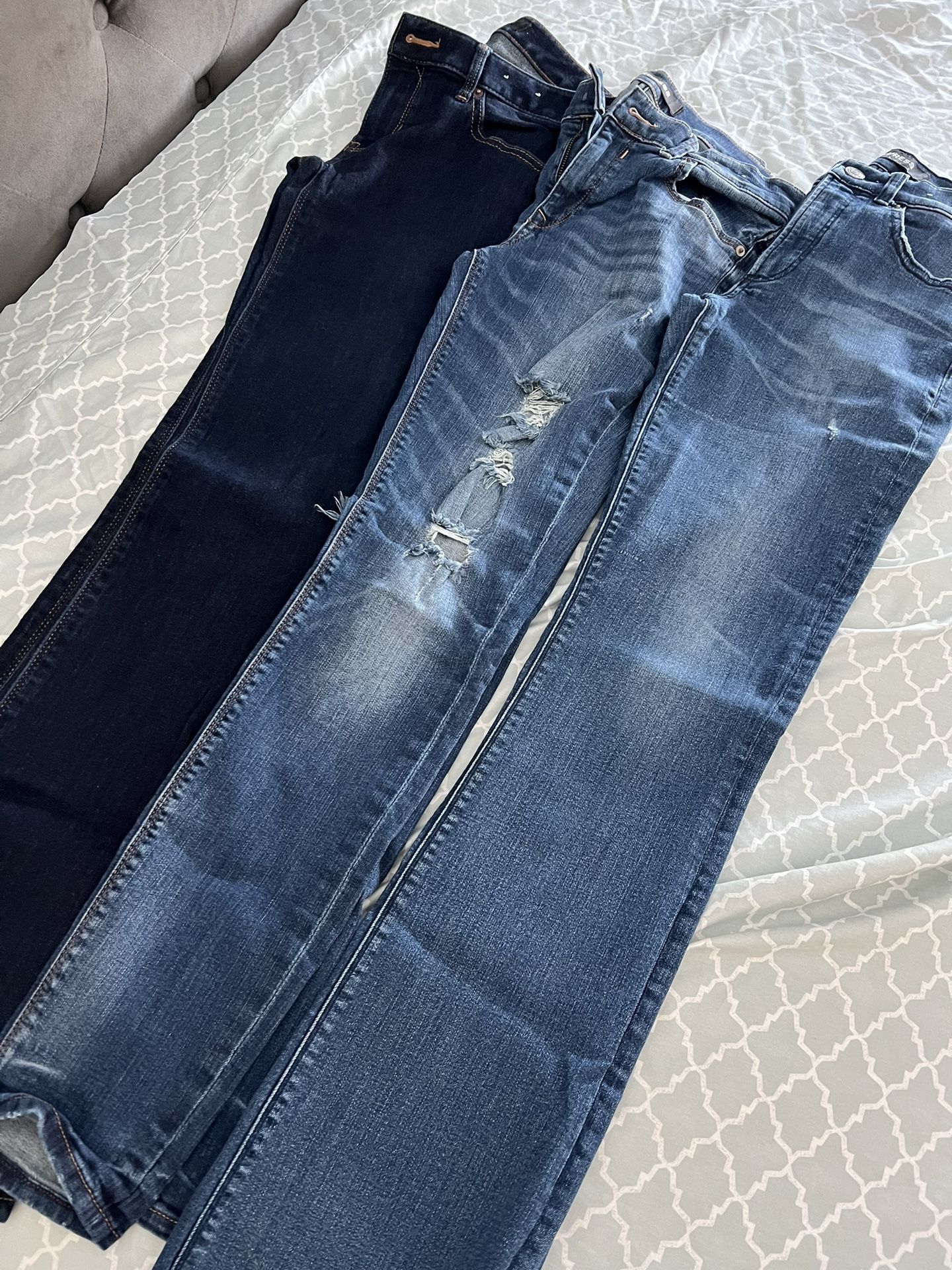 Ripped jeans are size 8 for $5 & the other 2 non-ripped are size 6 for $10 each