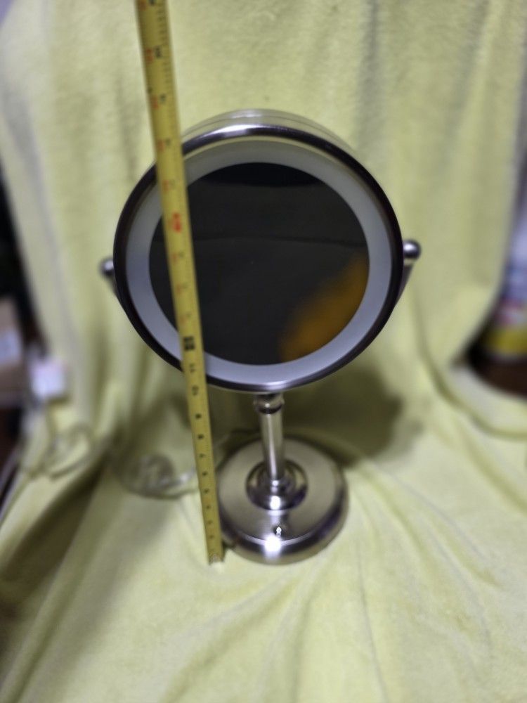 For sale is a two sided make-up mirror. It is lighted on both sides and is magnified. (See pics) Great condition!