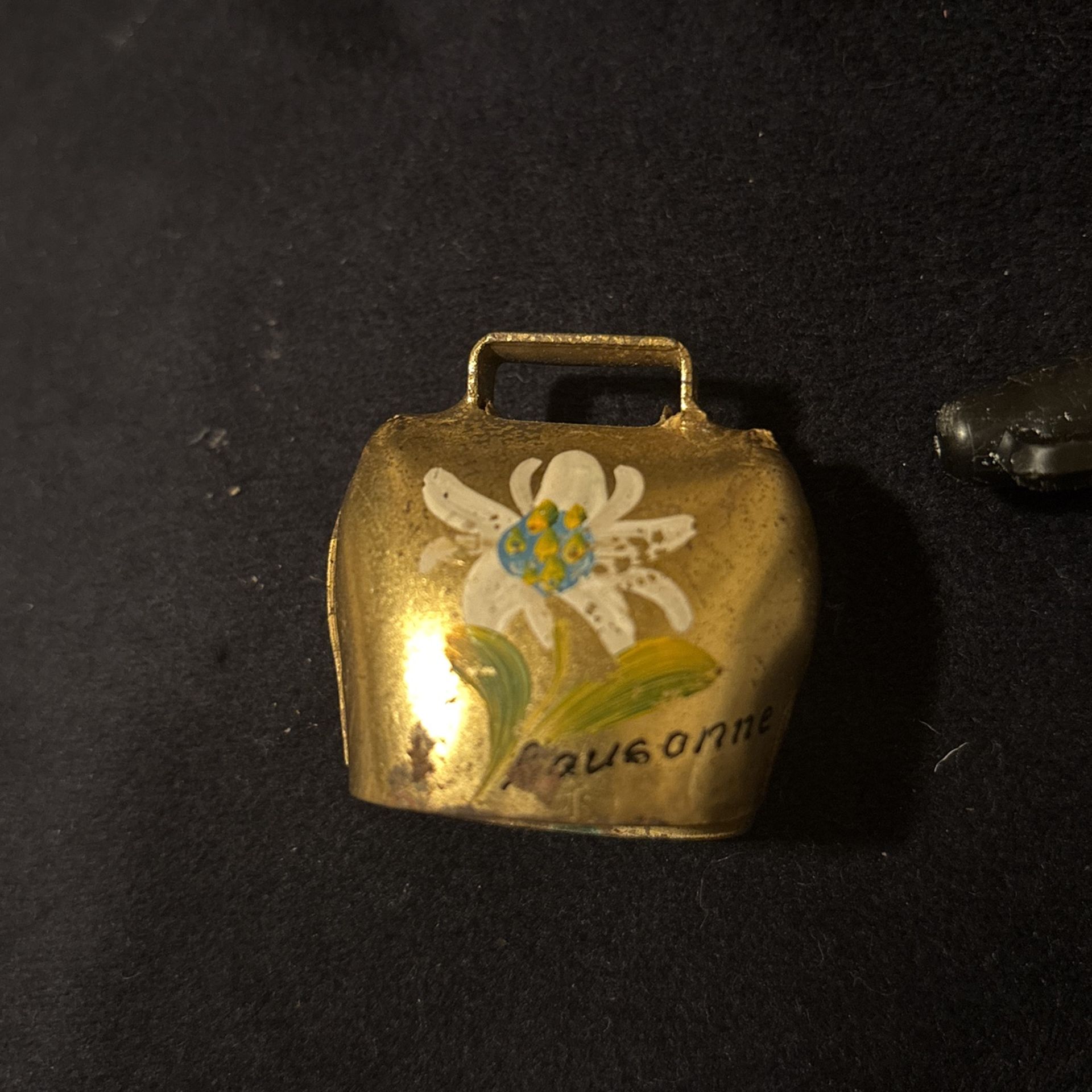 Vintage Brass Miniature Hand Painted Floral Cow Bell Not sure if it’s Swiss or German