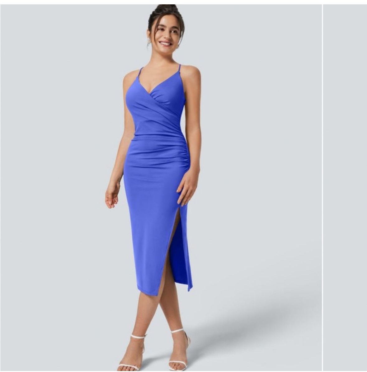 Airy crossover ruched backless lace up split bodycon dress. Midi length. Bra cups included. Never worn.