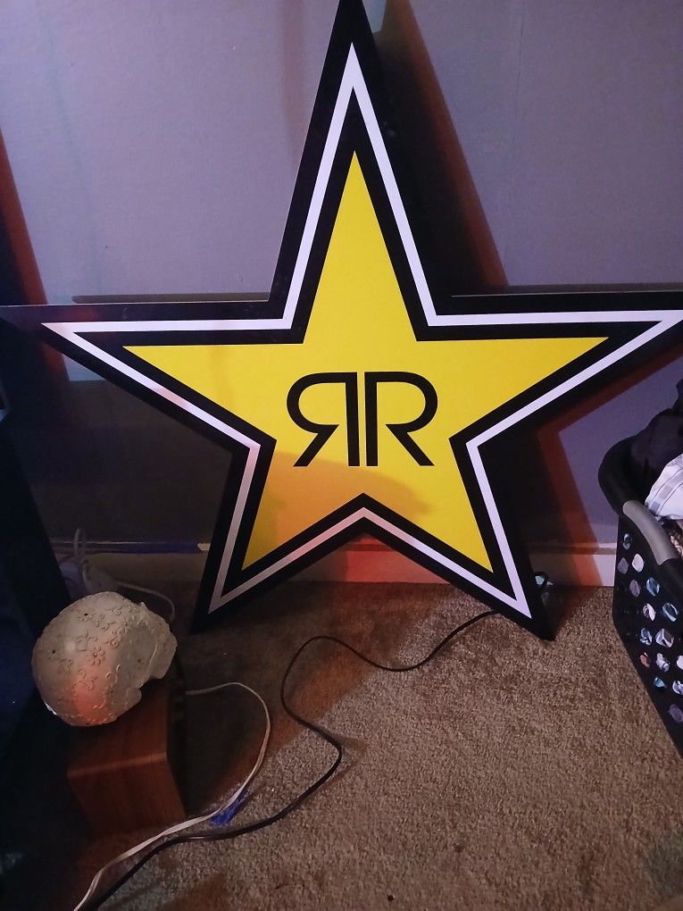 New 40" LED illuminated rockstar star sign. No damage or scratches at all. In perfect condition. Works perfect very bright. Has several hanging options and power cord. 150$ oɓo