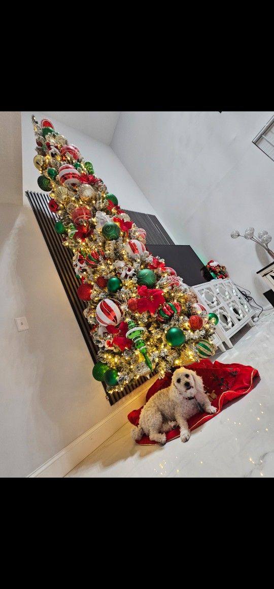 Location: cutler bay Ornaments NOT included Best Choice Products Flocked Pencil Christmas Tree, Pre-Lit Slim 12ft Artificial Holiday Decoration, 2-in-1 White & Multicolor Lights, Lighted Decor