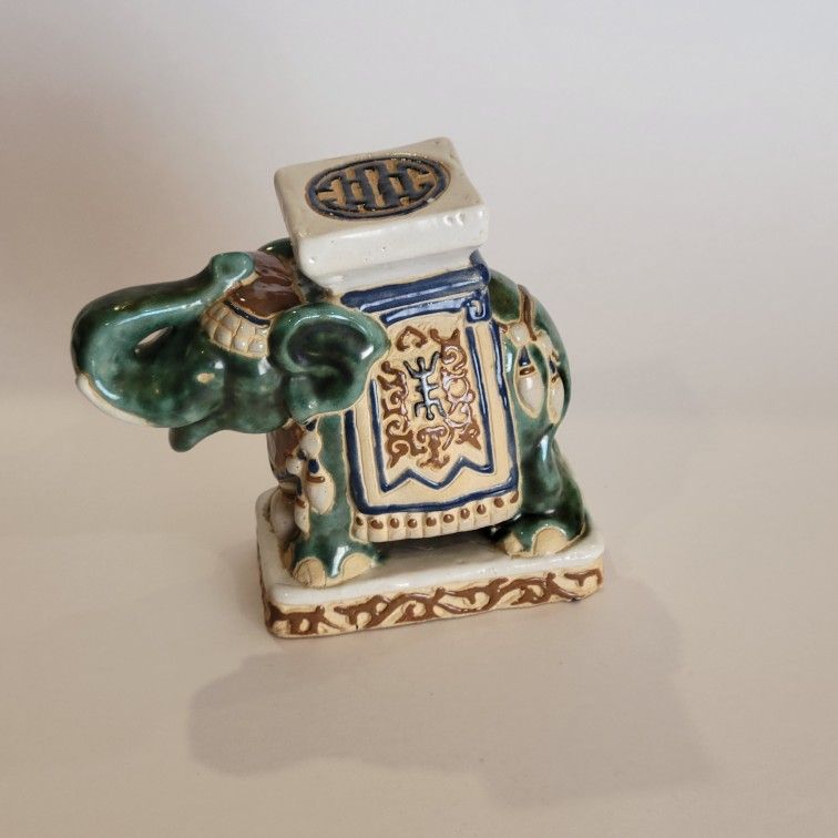 Vintage Asian Majolica Elephant Plant Candle Stand Centerpiece 6" tall. Pre-owned, good shape, no chips or cracks. Minor scuffs. It is 6.5x3x6". Weig