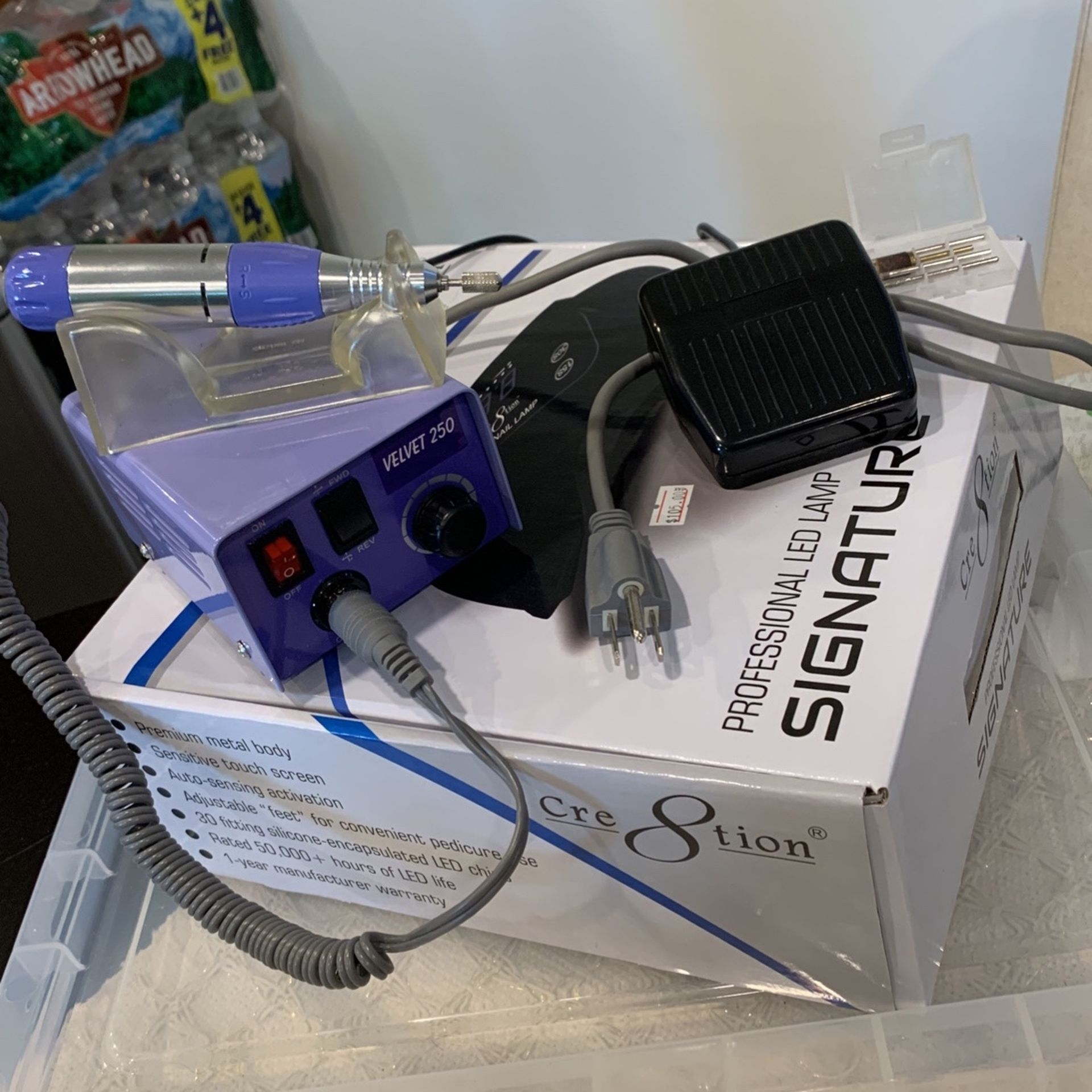 Like new barely new used electric nail filer really good condition good quality Comes with all drillbits