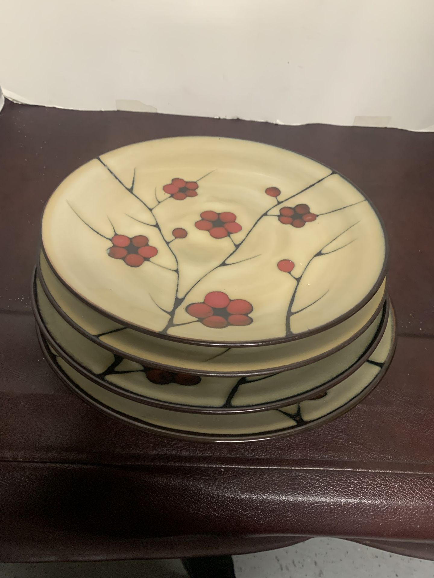 ♻️ Pfaltzgraff ASTER Red Flower Stoneware Coupe Dinner Plate Set 4 11" & 3 8”