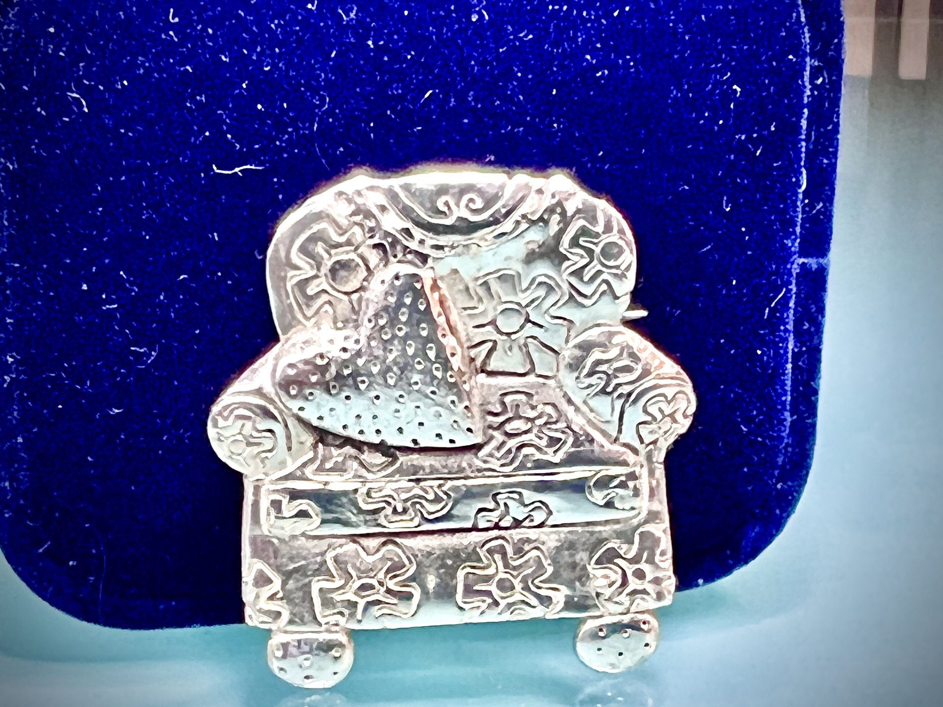 Luckytreasures4u is Proud to present a Fancy 3D Design Love Seat brooch Made from pure Sterling Silver. The Measurements are Approximately 1 5/16” x 1 1/4” at the widest point. And weighs 9.6g. The Condition is Excellent and stamped 925. The makers mark is stamped ME. This is a special piece that you will adore and get many Complements. One of a kind. Follow us on OfferUp, Luckytreasures4u is always putting up unique and interesting items For everyone!