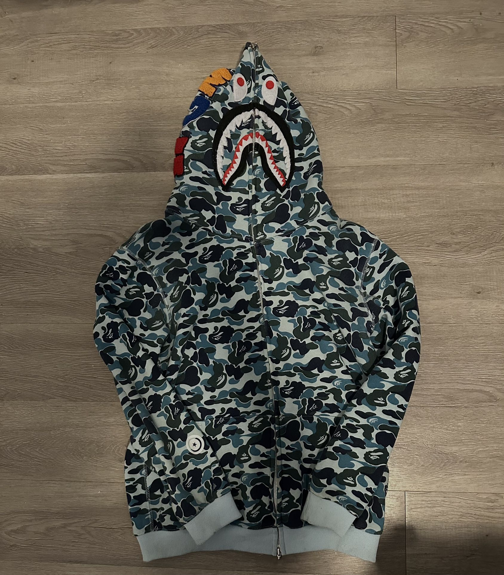 Blue Bape Shark Hoodie Fullzip Size Medium