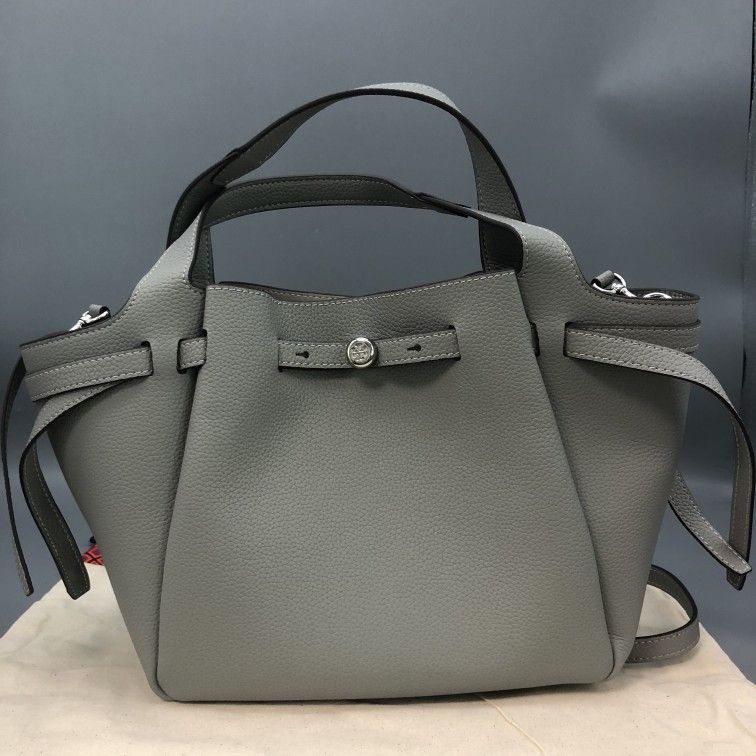 The Small Romy Tote is crafted in soft pebbled leather with a gently gathered silhouette. The ultimate everyday handbag, it is lightweight with a spacious interior organized with a deep pocket. Detailed with a slim belt and our new button logo. Carry it top-handle style or crossbody. Brand new with tags,unused. Height: 8.7" (22cm); length: 9.1" (23cm); depth: 4.3" (11cm) Pebbled leather Magnetic snap closure; belted strap with collar stud closure Top handles with 4.7" (12cm) drop; adjustable, removable leather shoulder strap with 20.3" (51.5cm) drop 1 interior hanging zipper pocket. Dust bag included.