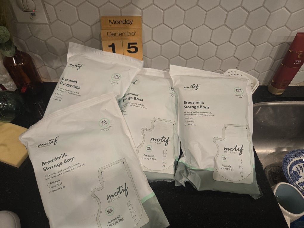 Breast milks storage bags 6 oz BPA free leak proof freezer safe. I have 3 new bags of 100 count and 1 of 90 open bag asking 50 for all