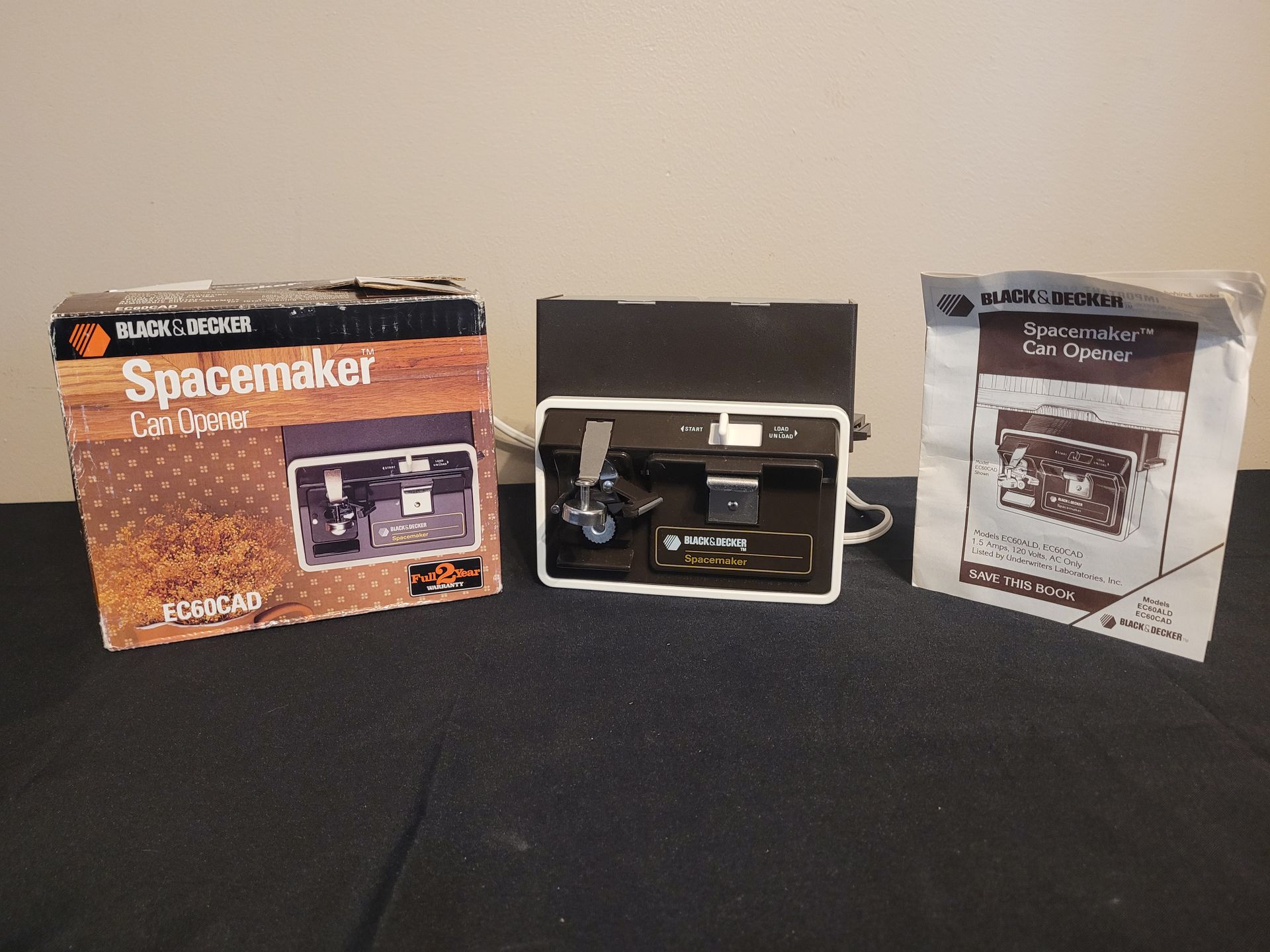 New Open Box Vintage Black & Decker Space Maker Can Opener EC60CAD