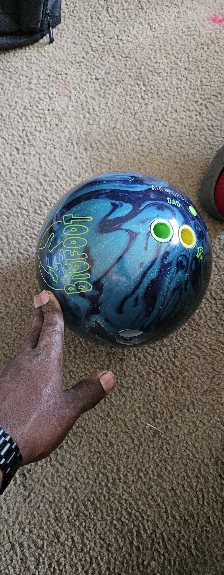 Bigfoot bowling bowling ball for sell. Great ball has about 10 games on it. No need for it anymore. Best offer can have it size 15lbs